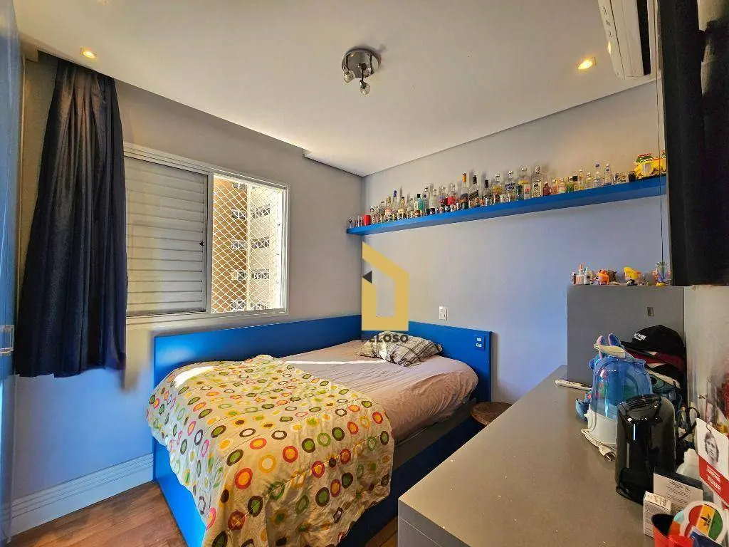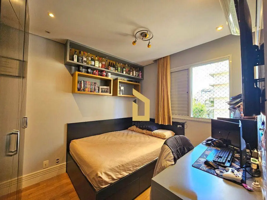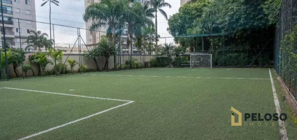 Prédio com piscina climatizada, churrasqueira, academia, sauna, salão de festas adulto e infantil, salão de jogos, brinquedoteca, campo gramado.