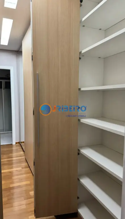 3 suítes amplas e iluminadas com armários planejados, a suíte Master com closet Elgin e ar-condicionado LG, sala íntima de TV com painel de madeira, sala de estar e jantar integradas e elegantes, banheiro social, cozinha planejada com portas de vidro, bancada de mármore preto e torneira gourmet, coifa potente com exaustor externo, área de serviço completa com armários planejados e despensa.