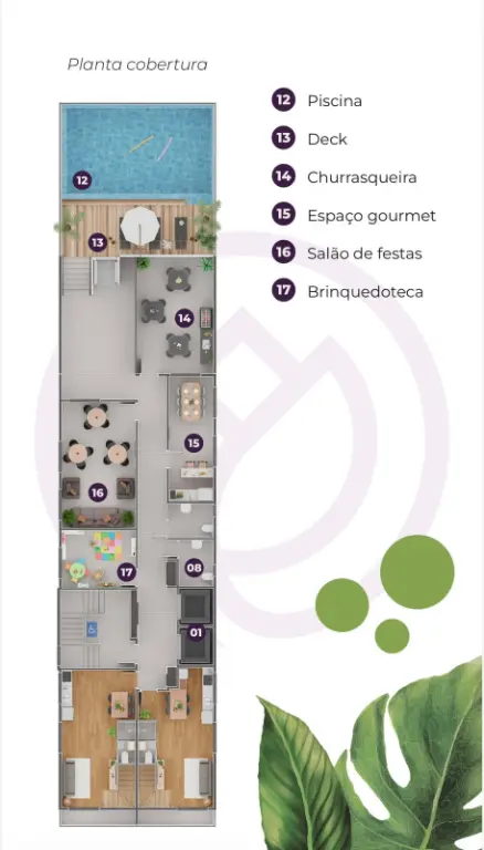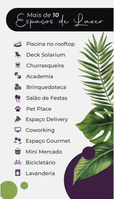 Lazer elevado ao topo Rooftop completo com: - Piscina adulto e infantil - Salão de festas - Espaço coworking - Brinquedoteca - Lavanderia - Solarium - Churrasqueira - Academia - Bicicletário - Delivery Center - Pet place - Mini Market