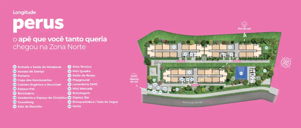 Viva em um empreendimento moderno, bem planejado e com tudo o que você precisa por perto. O Longitude Perus está localizado na Rua Roque Callage, nº 149 - Vila Perus, em uma região completa, com fácil acesso à Estação Perus da CPTM, comércios, escolas, serviços e lazer.