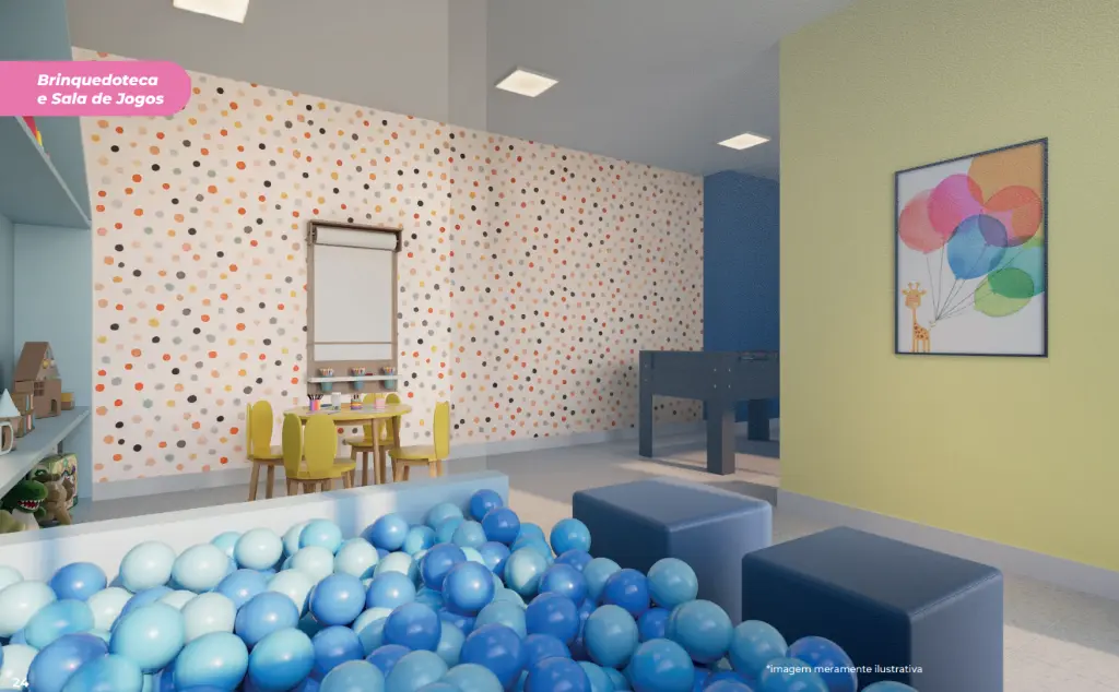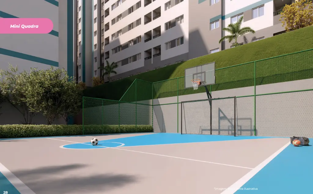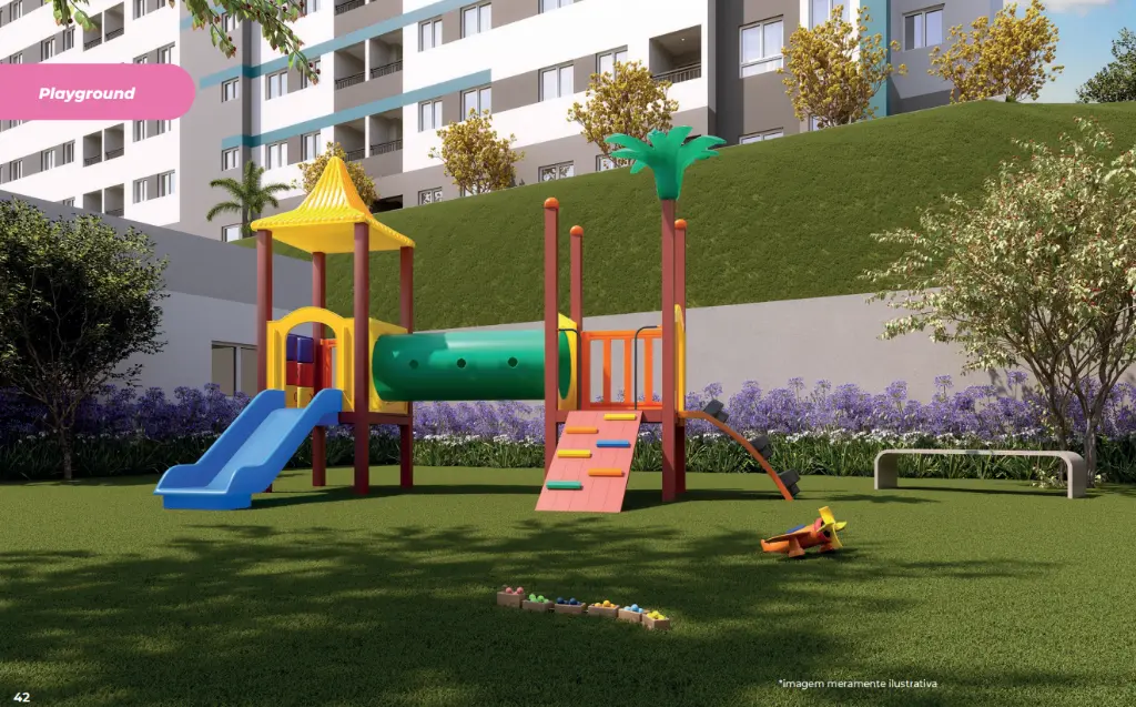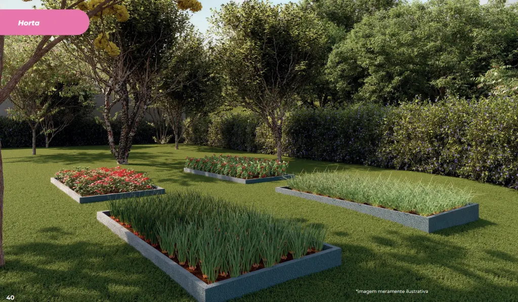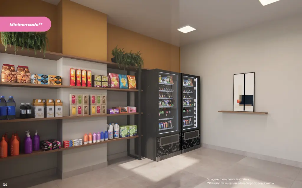Condomínio completo para o seu dia a dia Portaria com controle de acesso Salão de festas Academia e sala de ginástica Coworking e sala de reunião Mini quadra Brinquedoteca e playground Lavanderia OMO compartilhada Mini mercado no condomínio* Espaço pet, bicicletário e horta Condomínio fechado e acessível