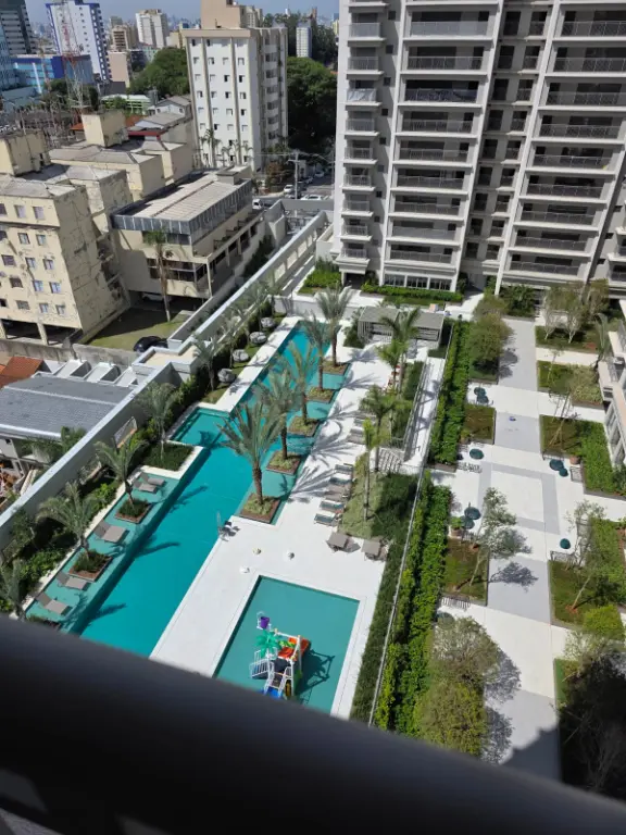 Lindo apartamento **recém-entregue pela construtora**, com **129,30 m²** muito bem distribuídos e localizado em **andar alto**, proporcionando uma vista privilegiada para o **parque aquático e piscinas** do condomínio.