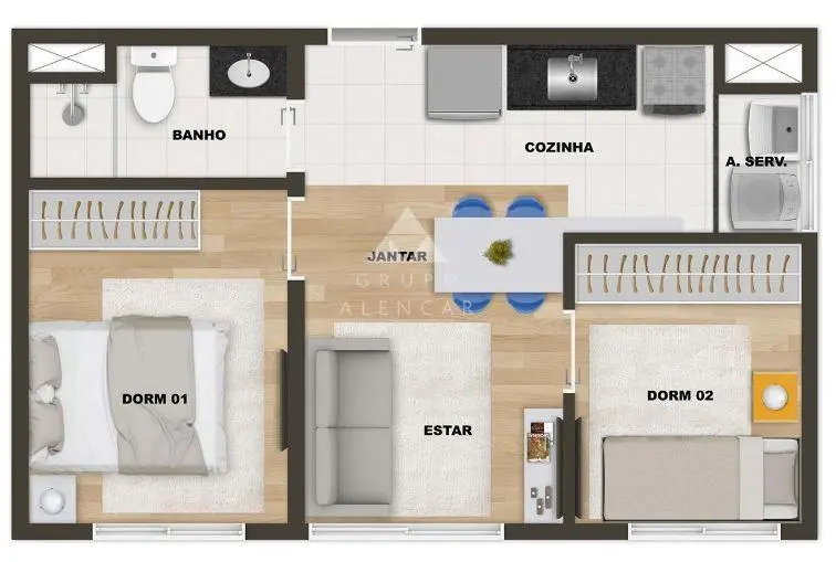 Área Privativa de 35,00 m². Acabamentos: Contra-Piso, Piso Laminado.