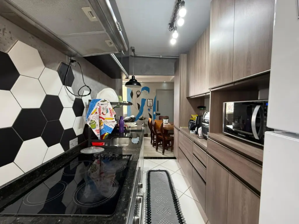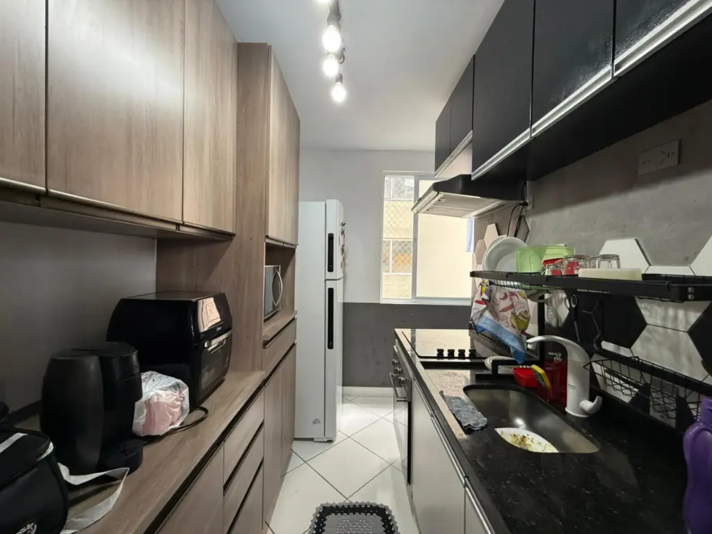 Com 45 metros quadrados de área útil, o apartamento dispõe de 2 quartos espaçosos, 1 banheiro moderno e um total de 6 cômodos bem iluminados. A sala de estar apresenta um design aberto, ideal para receber amigos e familiares. A cozinha equipada com grandes armários embutidos é um convite aos amantes da culinária.