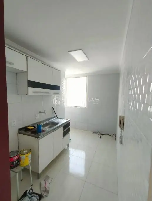 A cozinha possui revestimento em piso frio em todas as paredes. Apartamento arejado, aconchegante e em perfeito estado, pronto para morar.