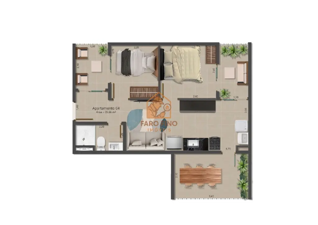O apartamento tem a escolha de ter varanda ou quintal privativo, o imóvel conta com áreas para descanso e lazer. Apartamento inteligente, com automação entregue sem custo extra e leva um Alexa de brinde.