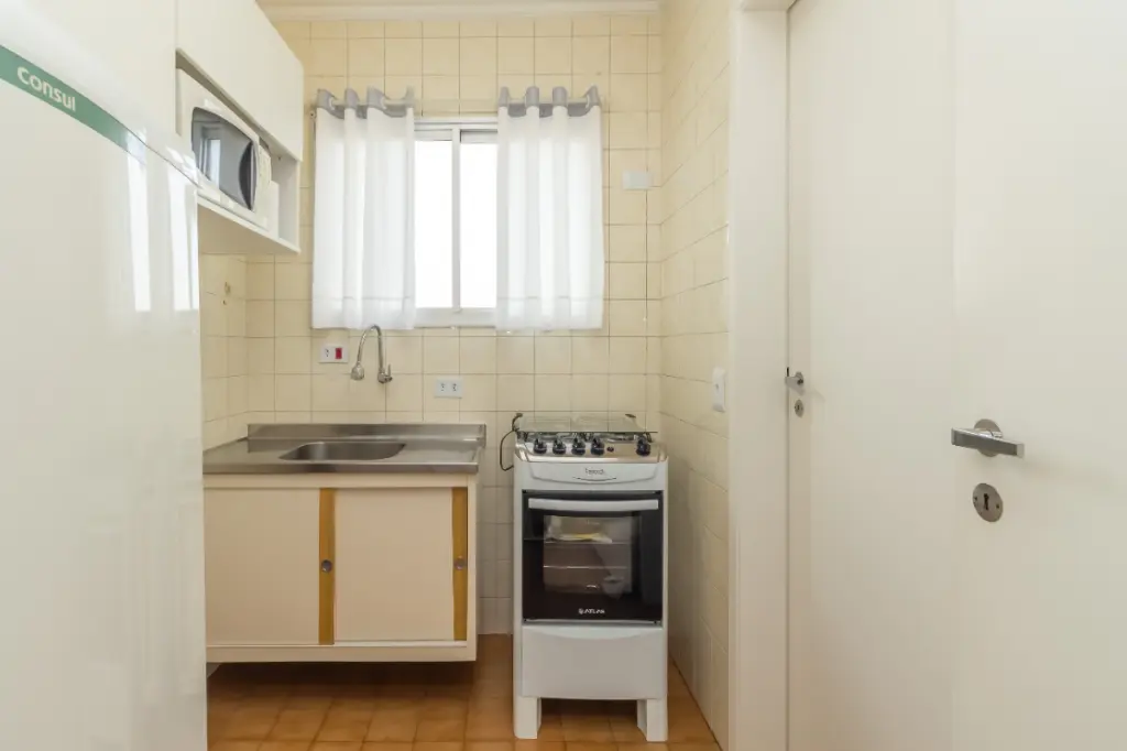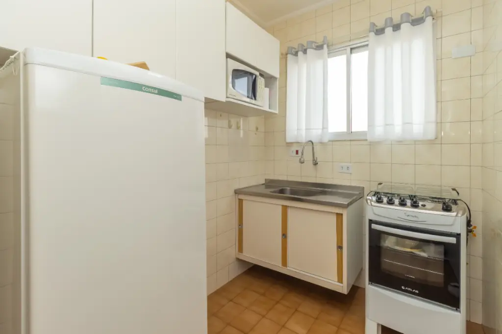 O imóvel conta com um dormitório com armários embutidos, sala aconchegante com varanda integrada que amplia o espaço e favorece a iluminação natural, cozinha funcional com armários planejados, banheiro bem ventilado e área de serviço bem posicionada. O piso laminado em ótimo estado traz conforto térmico e visual aos ambientes. Possui uma vaga de garagem.