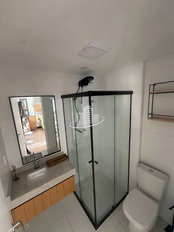1 banheiro com box de vidro instalado