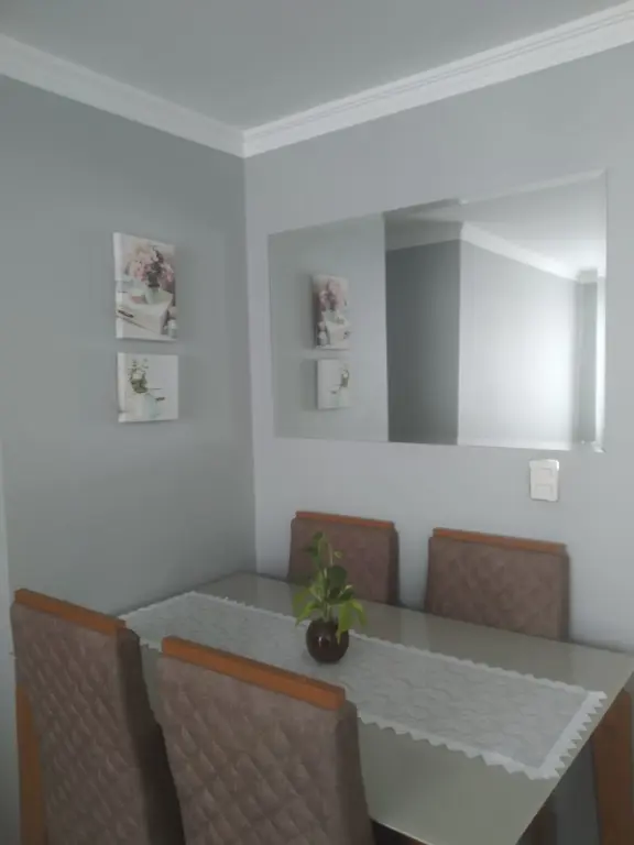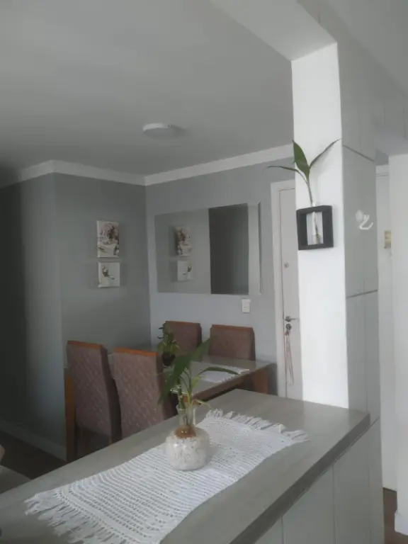 2 dormitórios sendo um home office completo, 1 banheiro, sala 2 ambientes, cozinha, área de serviço.