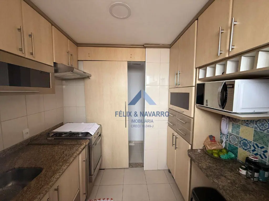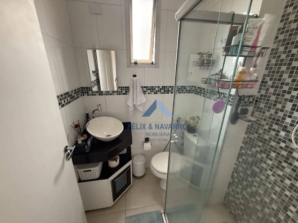 O condomínio possui piscina, salão de festas, churrasqueira, playground, quadra, bicicletário e portaria 24 horas