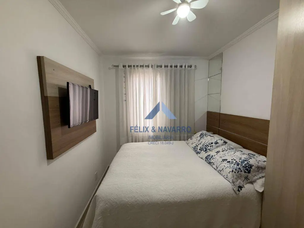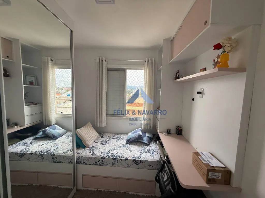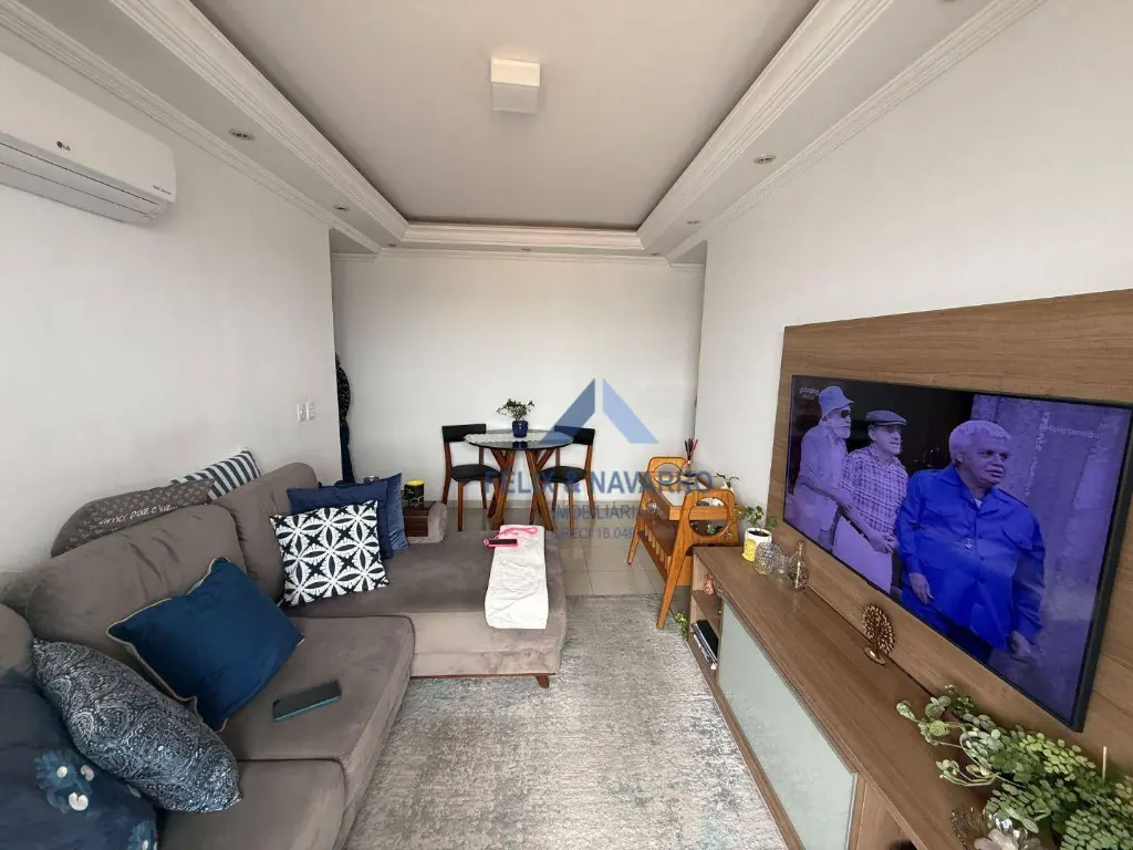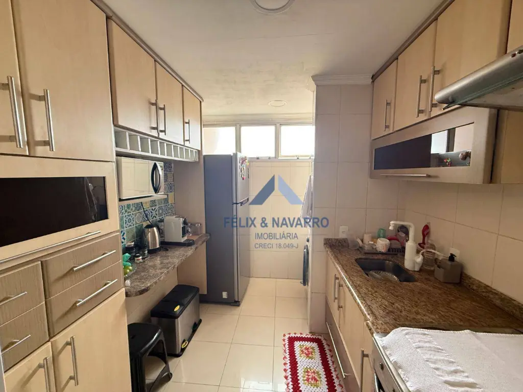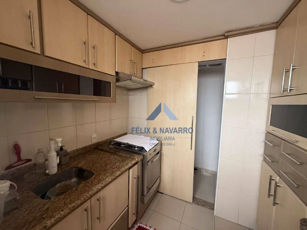 São 50 m², sendo 2 dormitórios (com armários), sala com ar-condicionado, sacada (com vista livre), cozinha (com armários), lavanderia, banheiro social e 1 vaga de garagem.