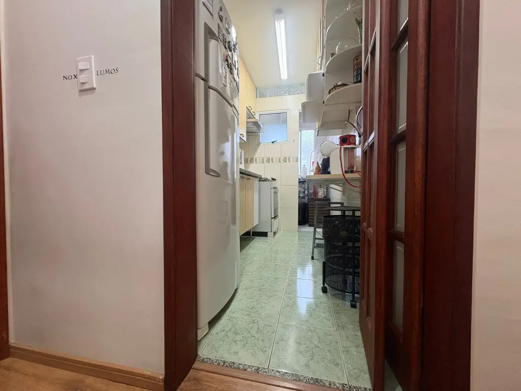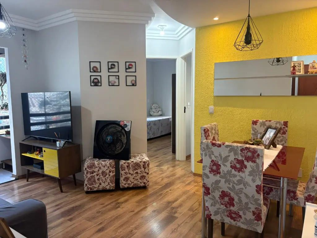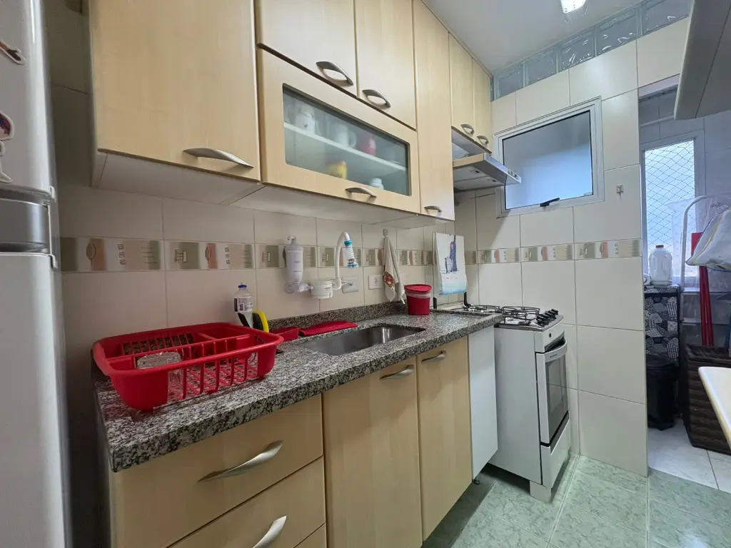 São 2 dormitórios, casal com armários, sala para 2 ambientes, sacada envidraçada, sanca, piso laminado, cozinha planejada, banheiro com box de vidro e gabinete, 1 vaga de garagem coberta, documentos ok!!