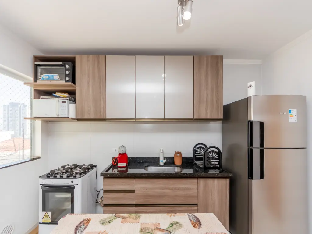 A cozinha é moderna, planejada e totalmente equipada, com armários, bancada funcional e ótimo aproveitamento de espaço, ideal para o dia a dia. O banheiro é bem acabado, com revestimentos de qualidade, box de vidro e ótimo padrão de construção. Todo o apartamento apresenta um acabamento impecável, por se tratar de um imóvel novo, pronto para morar, com móveis de bom gosto e excelente padrão.
