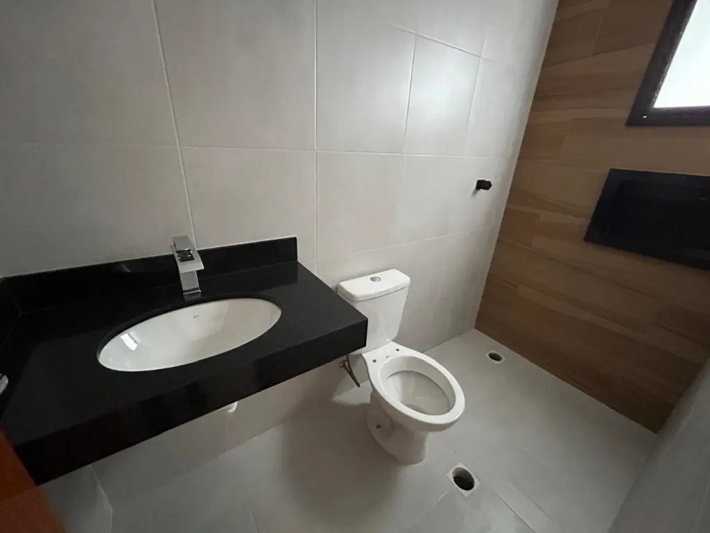 - Banheiro social com acabamento moderno