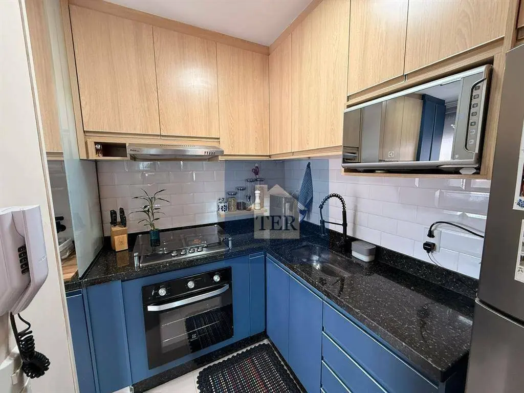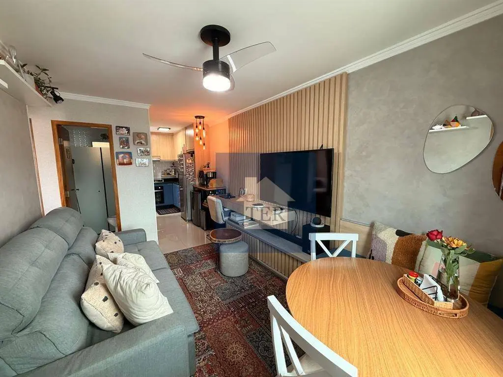 Apartamento de 45m², com excelente aproveitamento de espaço e ambientes bem distribuídos, contendo 2 dormitórios, sala, cozinha planejada, banheiro, área de serviço e 1 vaga de garagem. Conta com móveis planejados na cozinha, lavanderia, sala, banheiro e quarto principal.