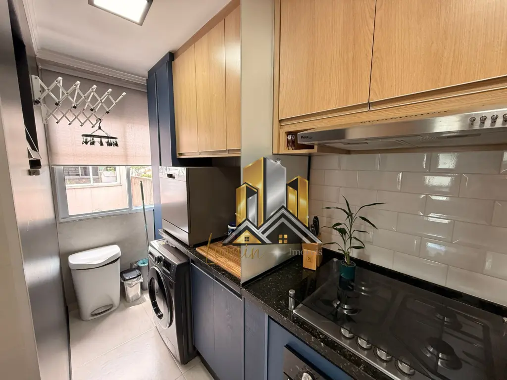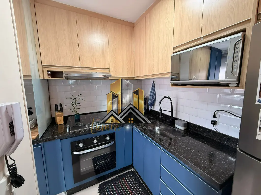Apartamento conta com móveis planejados na cozinha.
