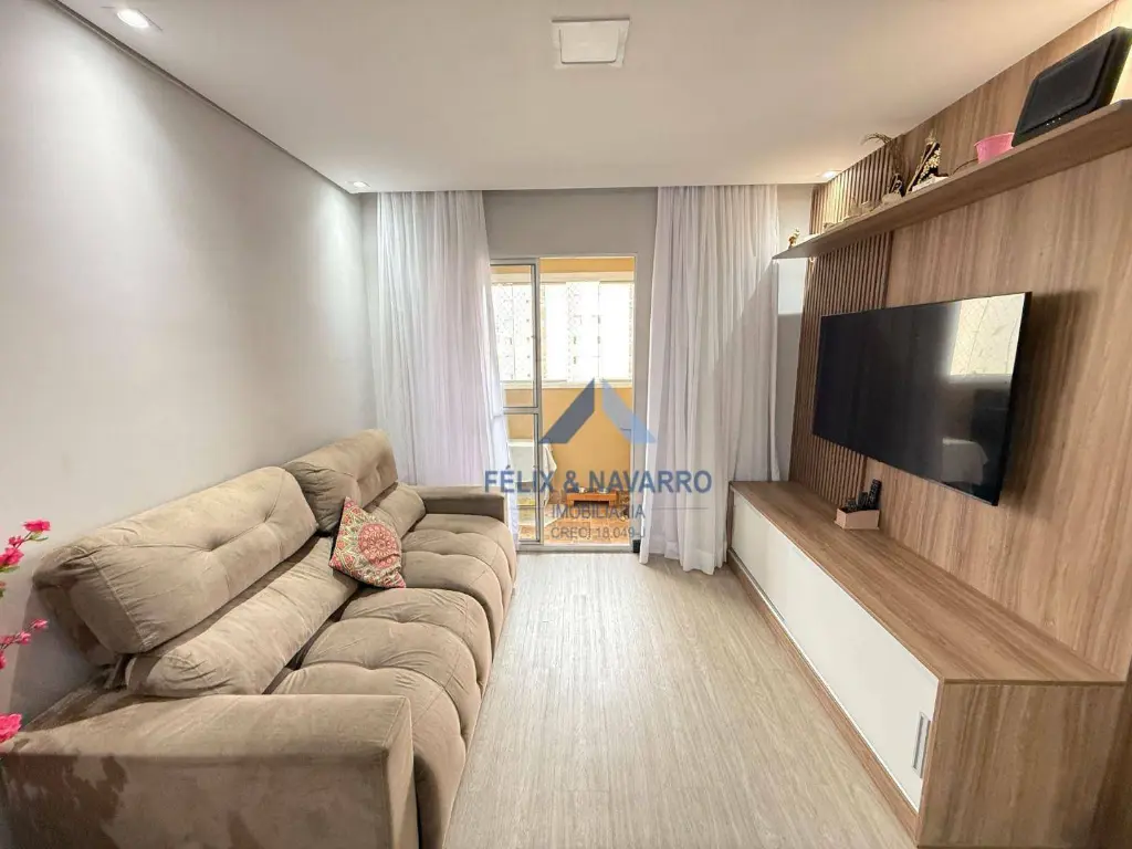 São 70 m², 03 quartos com armários (1 suíte), sala 2 ambientes, sacada, cozinha (com armários, forno, coifa e cooktop), 2 banheiros, lavanderia e 01 vaga de garagem.