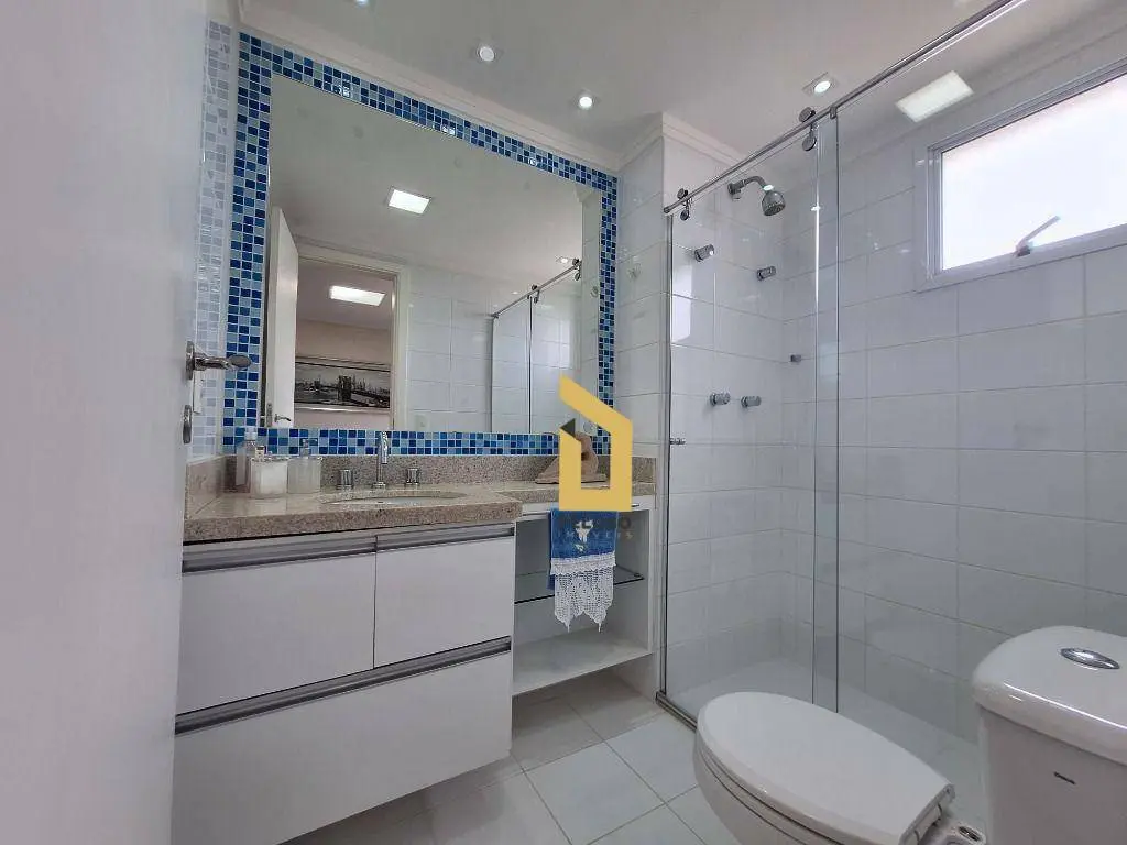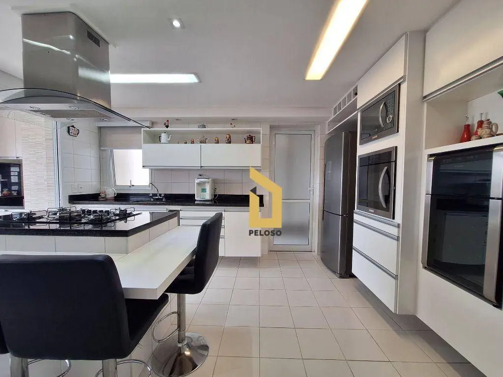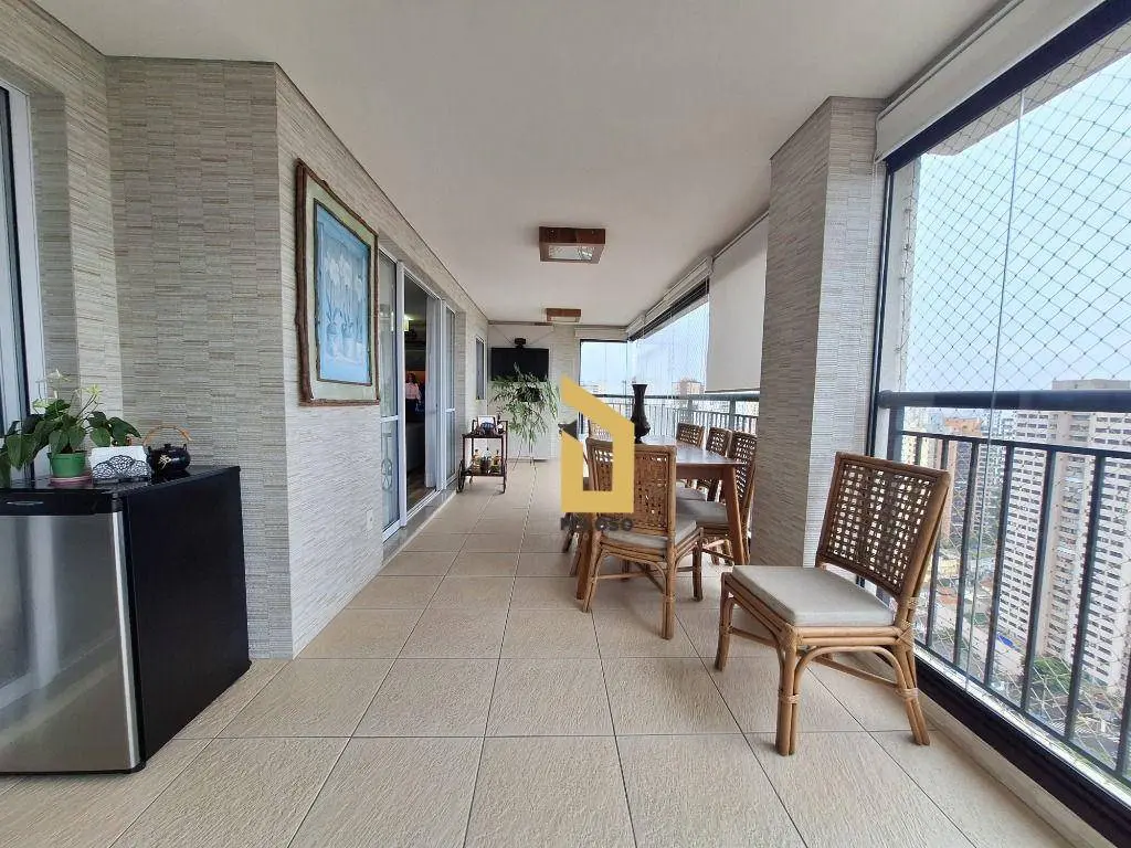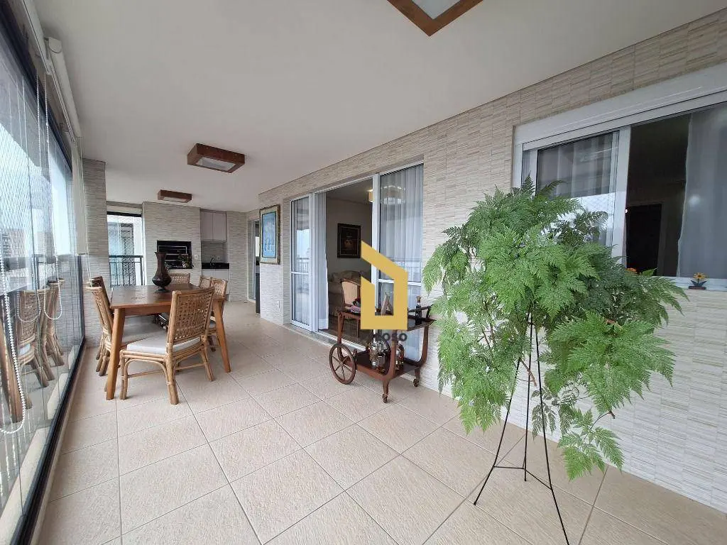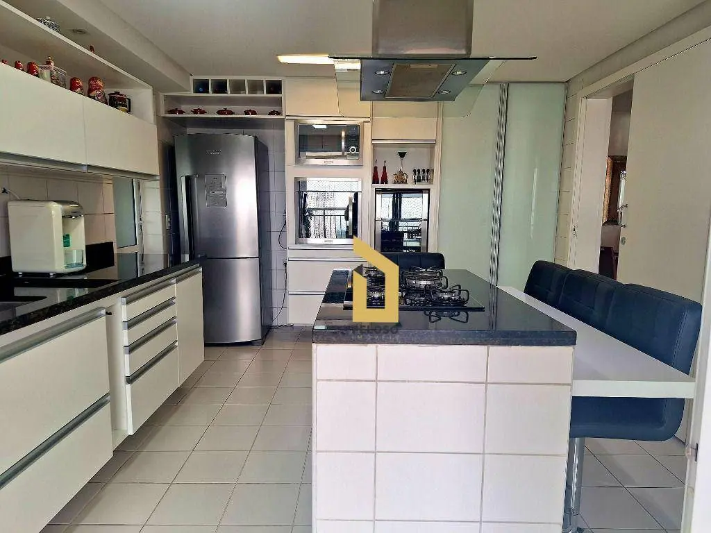 3 suítes sendo 1 master, sala ampla para 2 ambientes com lavabo, integrada à varanda gourmet com fechamento em vidro, cozinha planejada com ilha, despensa espaçosa e área de serviço com banheiro.