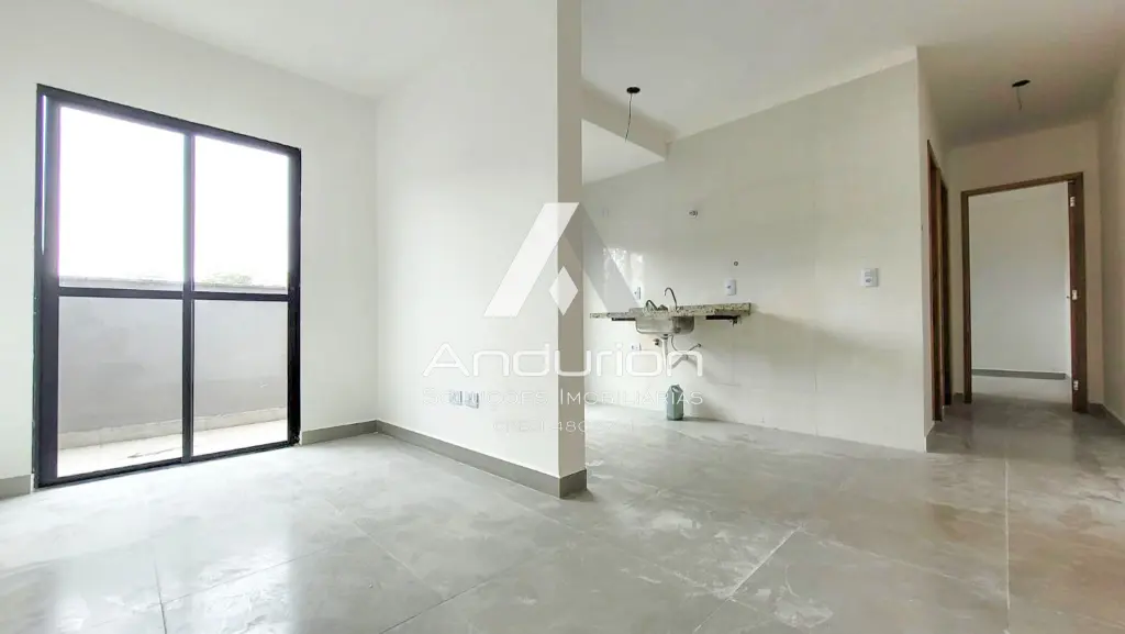 Todo em piso porcelanato, sala integrada com a cozinha em sistema aberto, terraço, 2 dormitórios, 1 banheiro moderno e arejado e com 1 vaga de garagem com elevador.