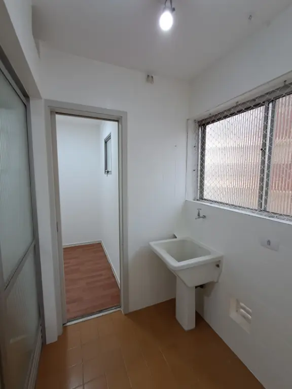 Amplo apartamento de 2 dormitórios com sala para 2 ambientes em porcelanato, 2 amplos quartos, apartamento todo pintado recentemente. Banheiro Social grande e mais um banheiro completo na área de serviço que possui mais um quarto. Cozinha ampla com armários planejados. 1 vaga coberta e fixa.