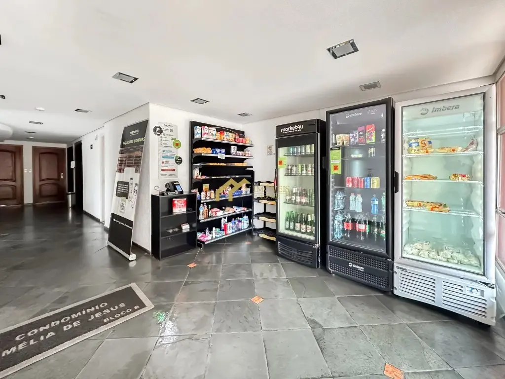 - Lazer com piscina, solarium, salão de festas, churrasqueira, academia, playground, mercadinho e salão de jogos.
