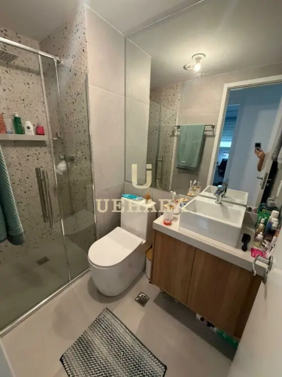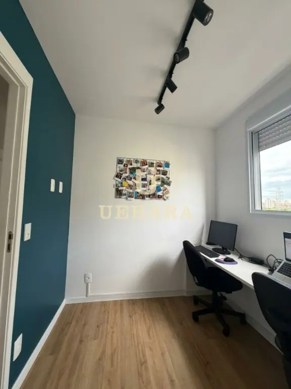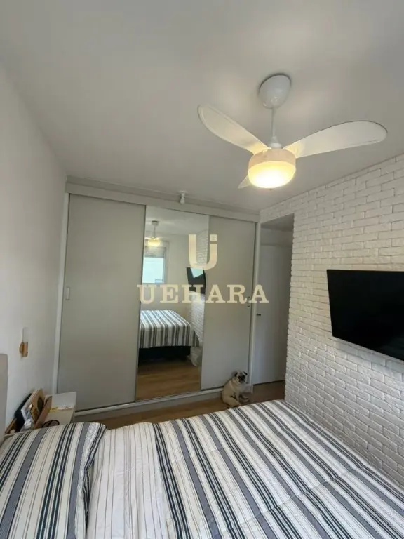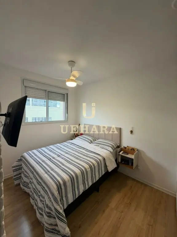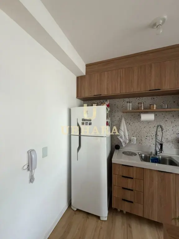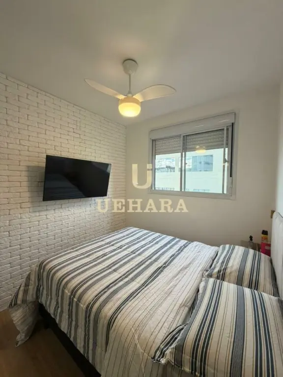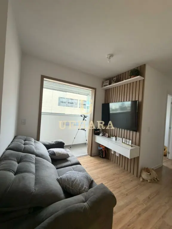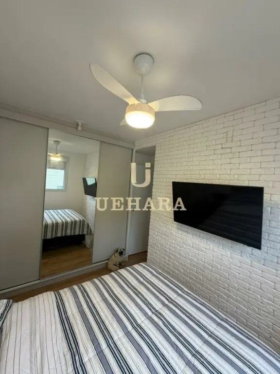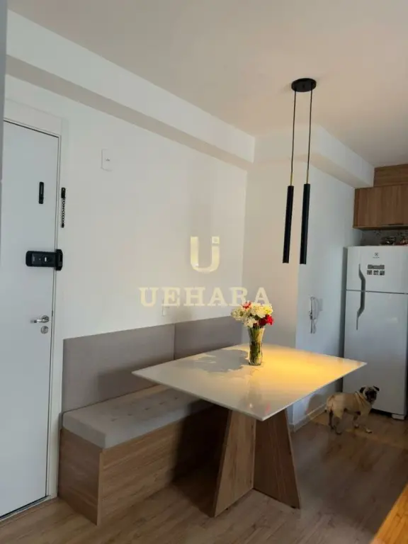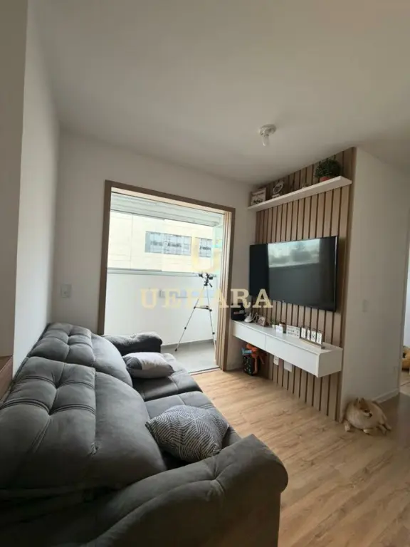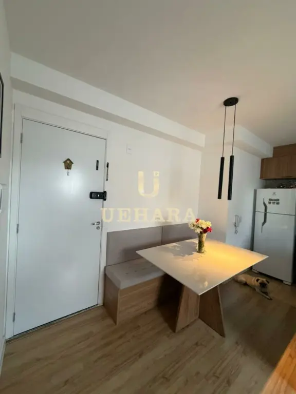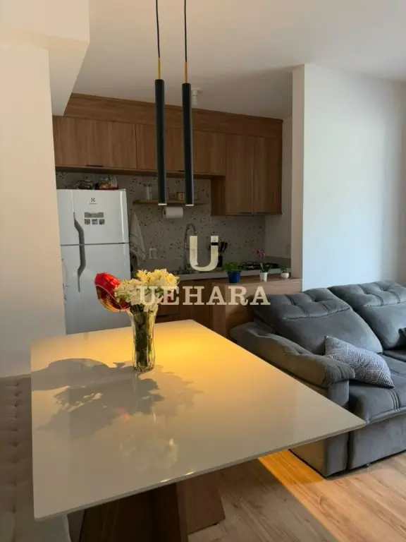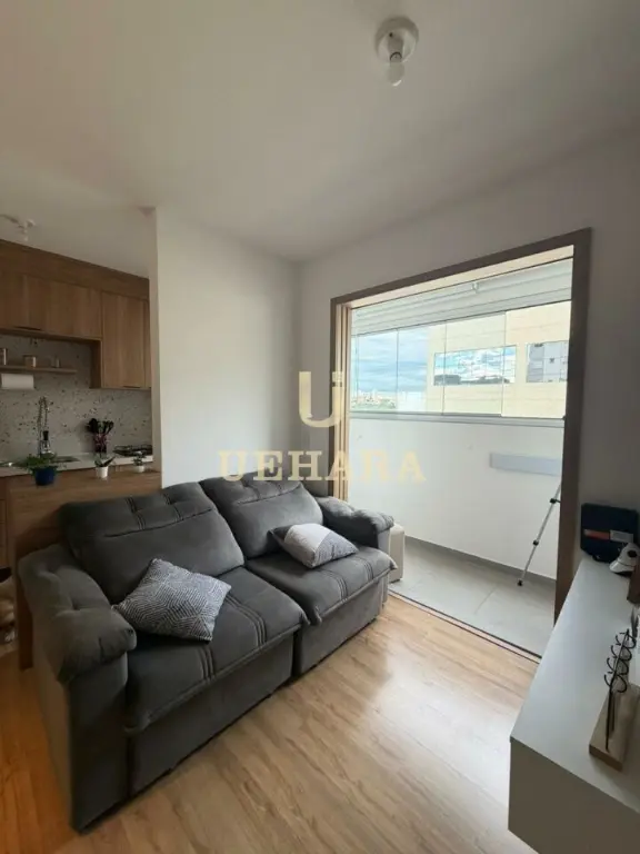 Apartamento de 43m², com 02 dormitórios, sala, varanda com móveis planejados e piso laminado, cozinha americana mobiliada, gás encanado, área de serviço, banheiro com piso frio e SEM vaga de garagem.