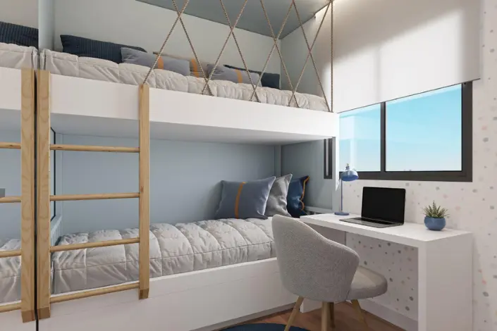 Plantas: Os apartamentos possuem 54,81m², distribuídos em 2 dormitórios (1 suíte) e uma charmosa varanda para os seus momentos de descanso.