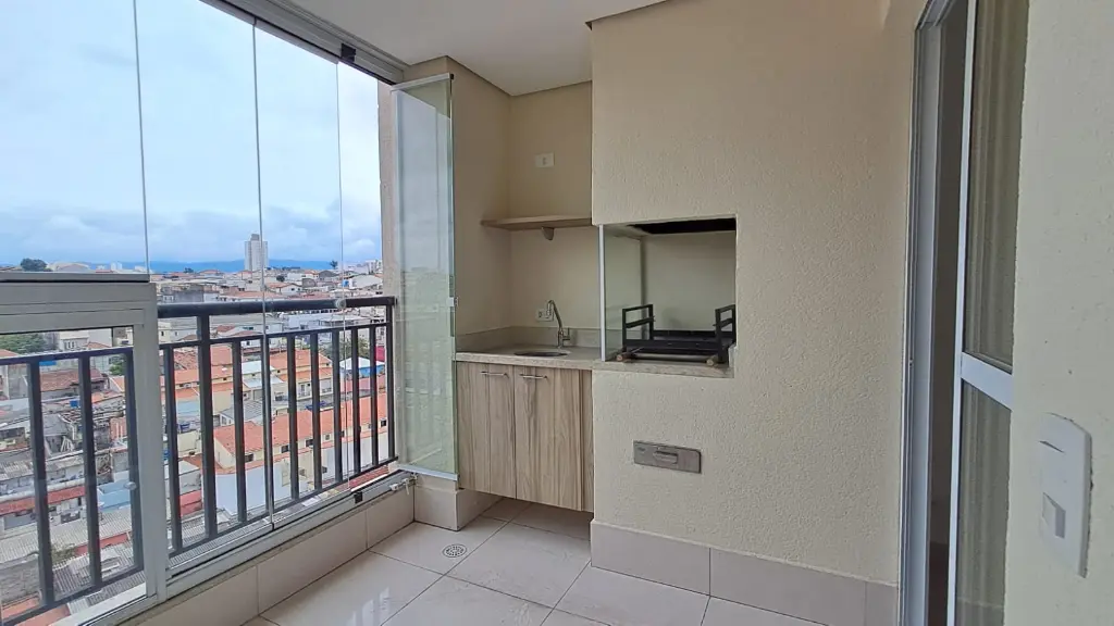 O apartamento conta com 2 dormitórios bem iluminados, 1 banheiro completo com ventilação natural, box blindex e móveis planejados, sala para dois ambientes integrada a uma varanda gourmet planejada e envidraçada, com vista livre. Os ambientes possuem piso em porcelanato, janelas de alumínio com rede de proteção e excelente circulação de ar. A cozinha é planejada e funcional, equipada com mesa retrátil, além de área de serviço e lavanderia com janela. Possui 1 vaga de garagem e o condomínio oferece ainda 3 vagas no recuo para visitantes.