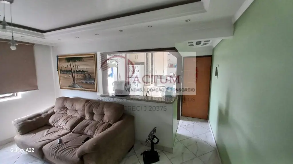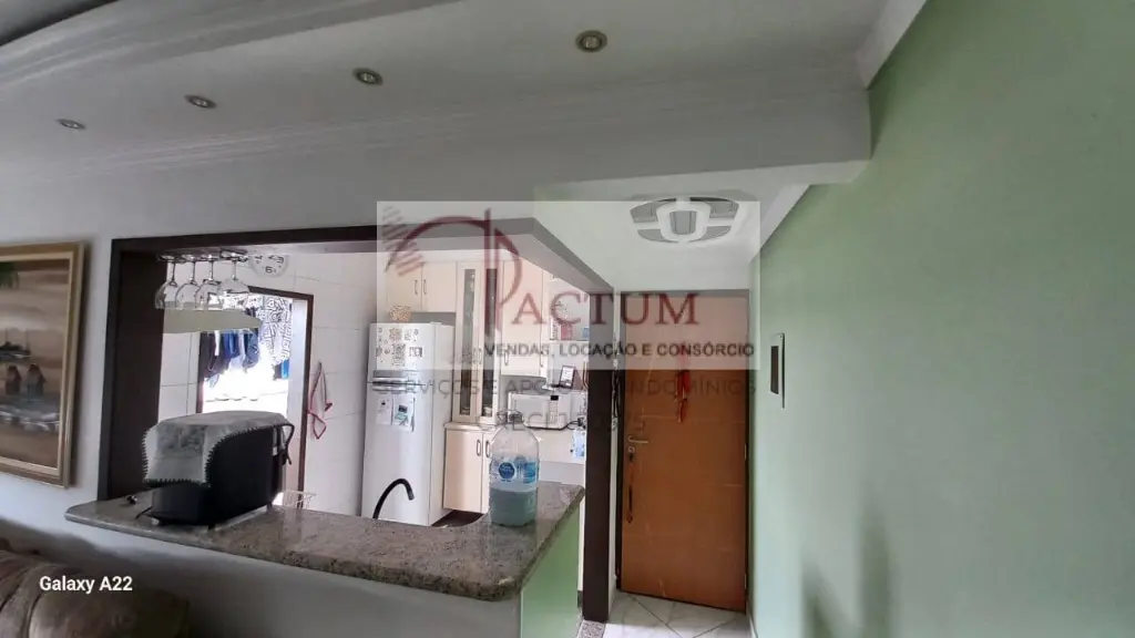 60 m² bem distribuídos contendo: 2 dormitórios, 1 banheiro, Sala confortável, Cozinha Americana com armários em ótimo estado, Piso frio de excelente qualidade, Portas internas em vidro jateado, 1 vaga de garagem bem localizada