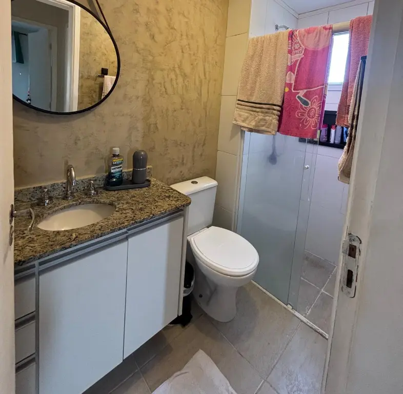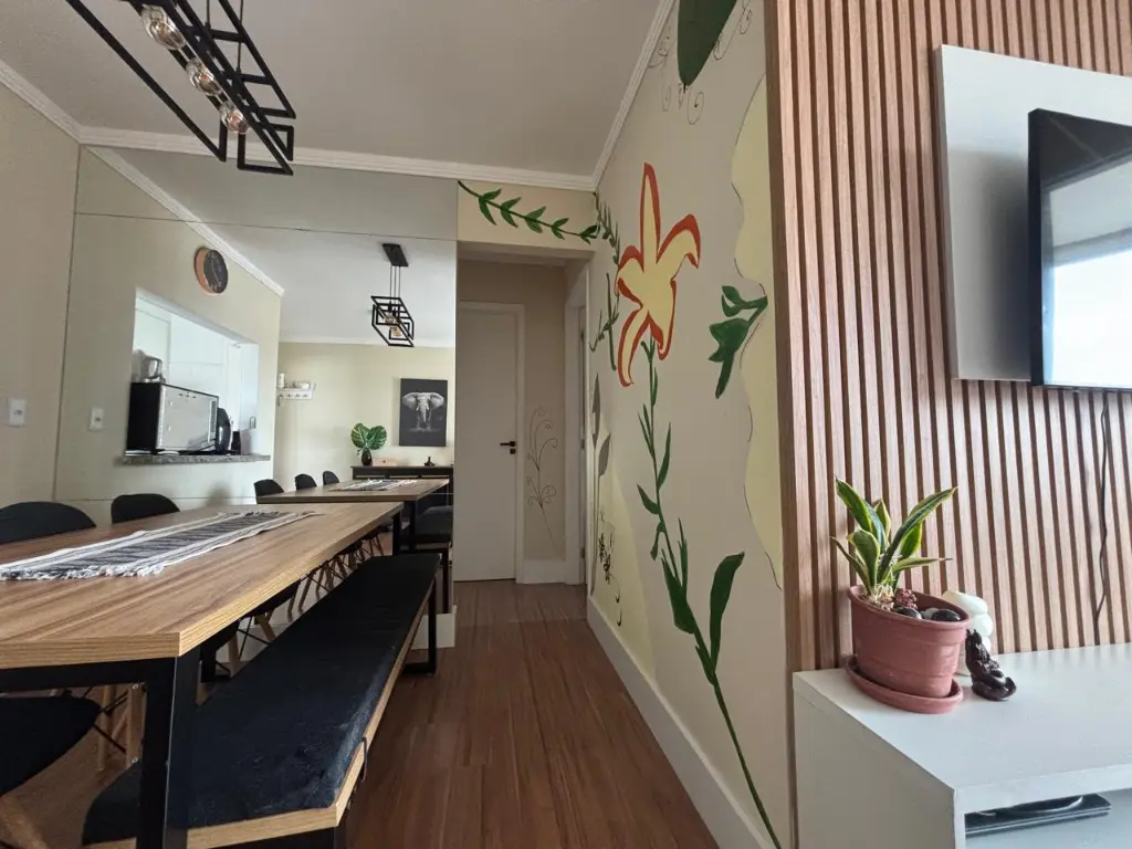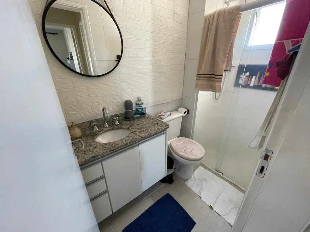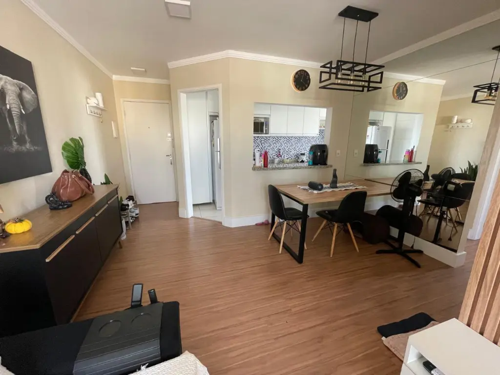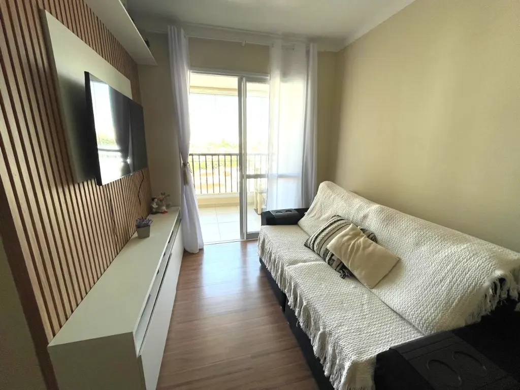 Apartamento 59m², 2 dormitórios, 2 vagas, em andar alto, com sacada e vista livre, iluminação natural, excelente ventilação, possui 2 dormitórios, banheiro e está semi mobiliado.