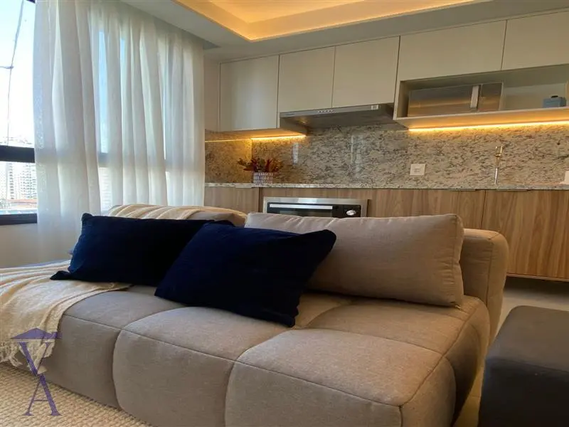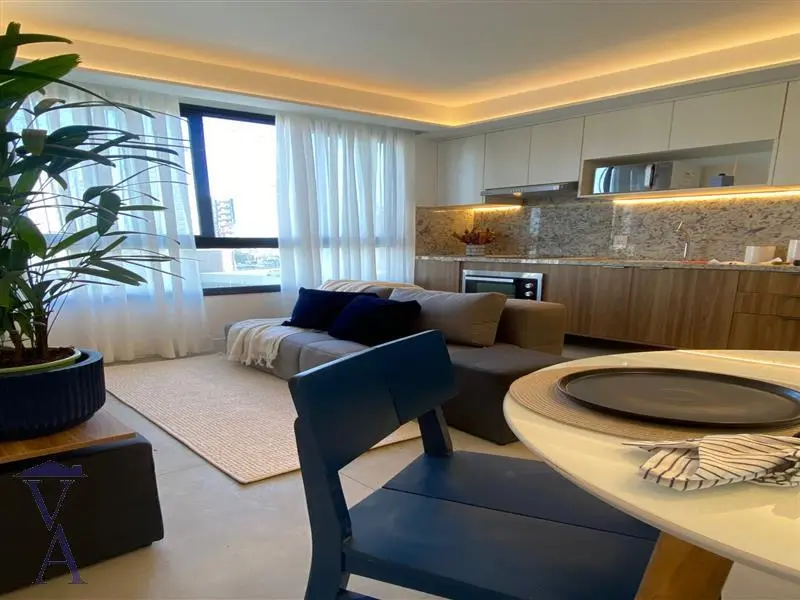 Apartamento mobiliado para locação ou venda com dois dormitórios, sendo um deles suíte, sala equipada com sofá, tapete, televisão de 55 polegadas e mesa com três cadeiras, proporcionando um ambiente confortável e pronto para morar. A cozinha é completa, contando com geladeira, fogão, micro-ondas e filtro Electrolux, além de dois banheiros, lavanderia, área de serviço e uma vaga de garagem, garantindo praticidade no dia a dia. O condomínio oferece excelente infraestrutura de lazer e conveniência, com terraço, piscina, churrasqueira, playground, salão de jogos, salão de festas, academia, mini mercado, espaço gourmet com forno a lenha, brinquedoteca, coworking e espaço pet, ideal para quem busca conforto, comodidade e qualidade de vida.