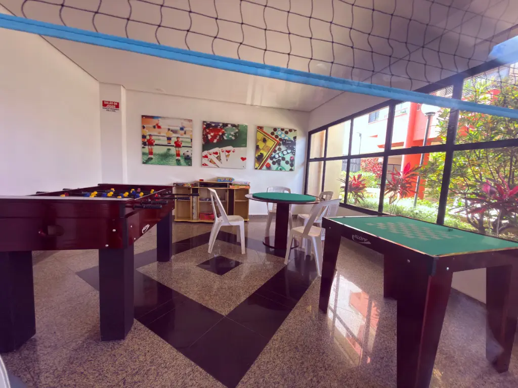 O condomínio oferece estrutura completa de lazer e segurança, com portaria 24 horas, hall de entrada, salão de festas, salão de jogos, quadra de esportes, playground, piscina adulto e infantil, academia de ginástica, brinquedoteca e elevador.