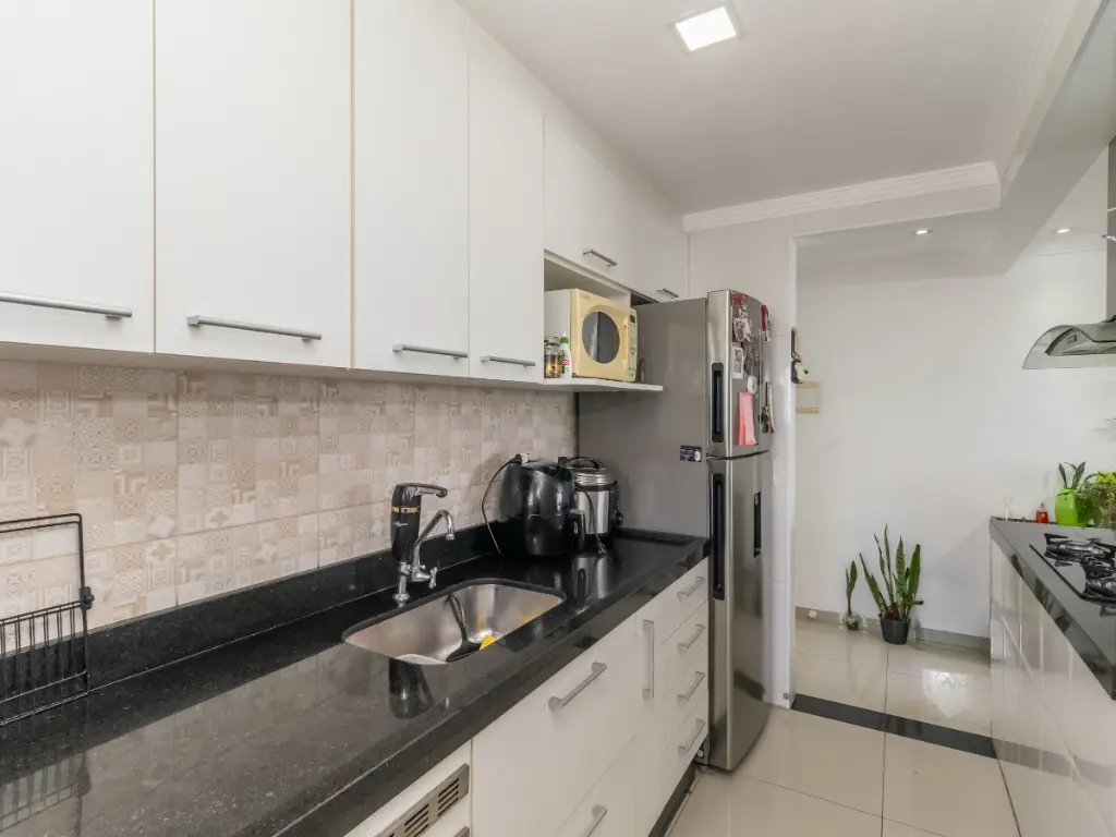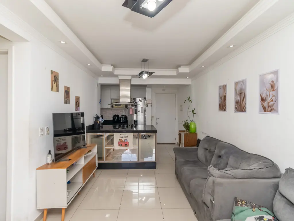 O apartamento possui uma planta bem distribuída e funcional. A cozinha integrada à sala cria um ambiente moderno e acolhedor, ideal para quem gosta de receber amigos e familiares. A varanda gourmet complementa o espaço, perfeita para momentos de lazer e confraternização.