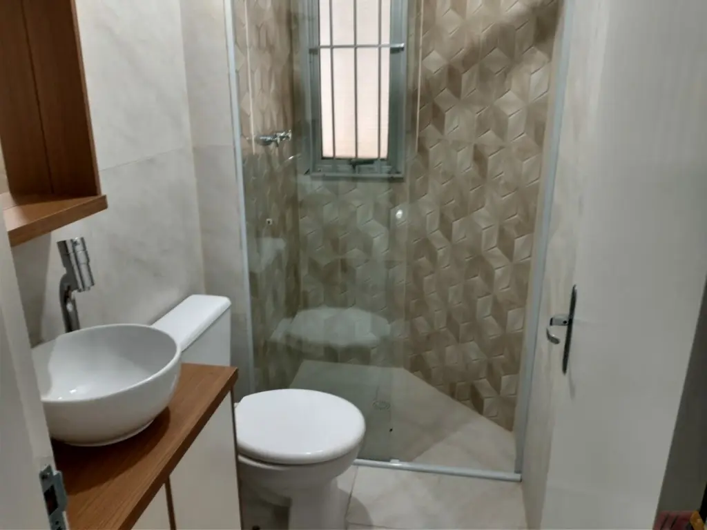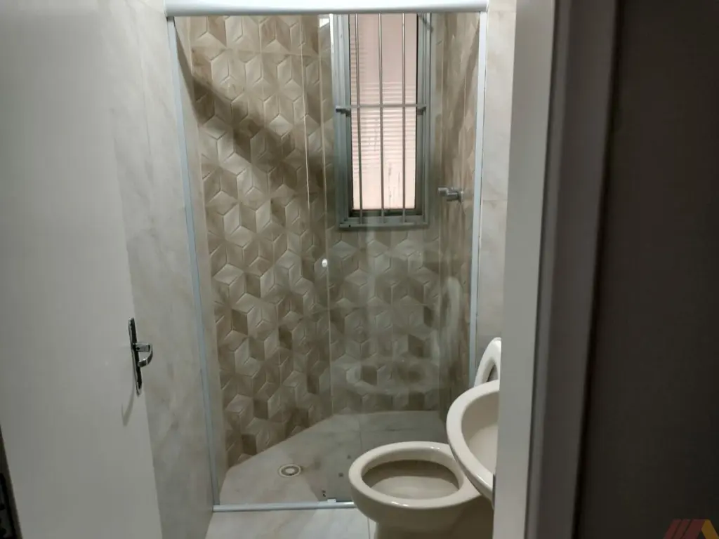 Sacada, box de vidro nos banheiros.