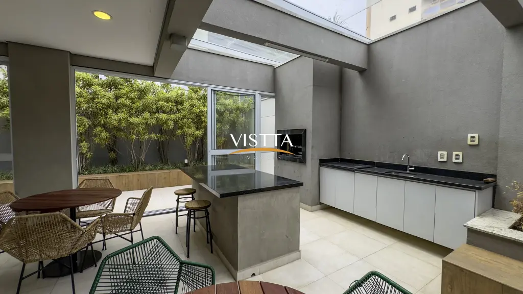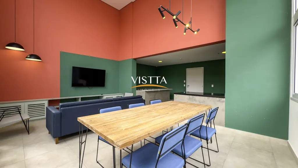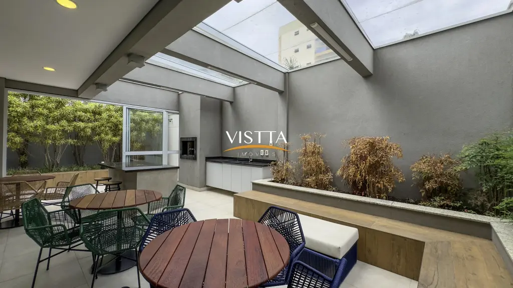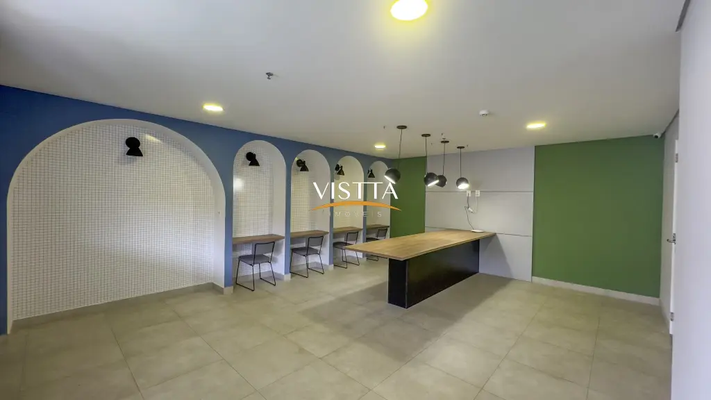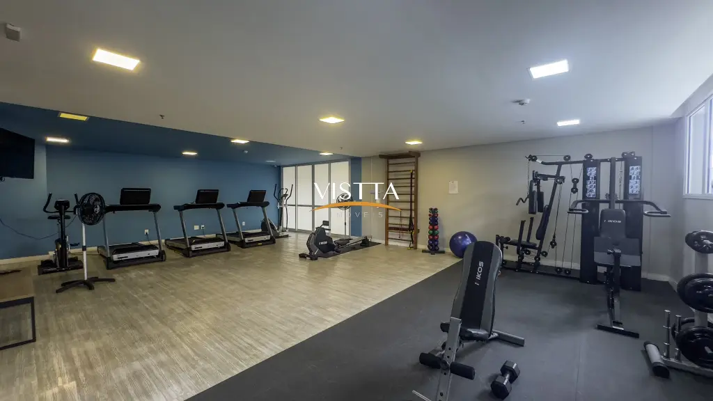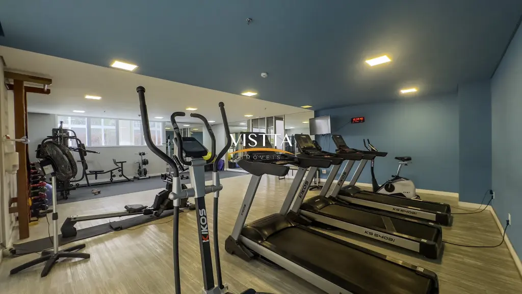Estrutura do Condomínio 1º e 2º Subsolos: Acesso aos elevadores e caixas de escada, vagas de garagem e espaço pet. Pavimento Térreo: Acesso social com guarita e W.C., hall social com pé-direito duplo, vestiários para funcionários, academia, administração, lavanderia, salão de festas com pé-direito duplo (com copa e W.Cs), sauna com área de repouso, espaço gourmet, piscina e churrasqueira. Mezanino (área comum): Apartamento do zelador, espaço home office, home cinema e salão de jogos.