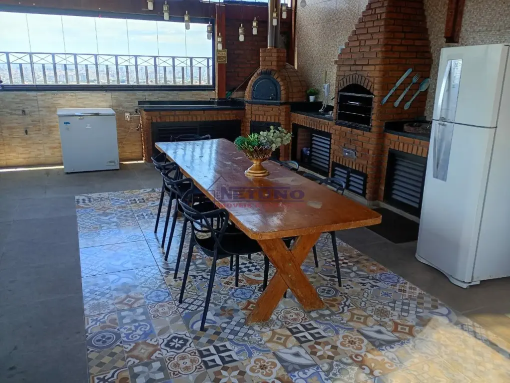 lazer com pscina, salão de festas com churrasqueira e forno de pizza,