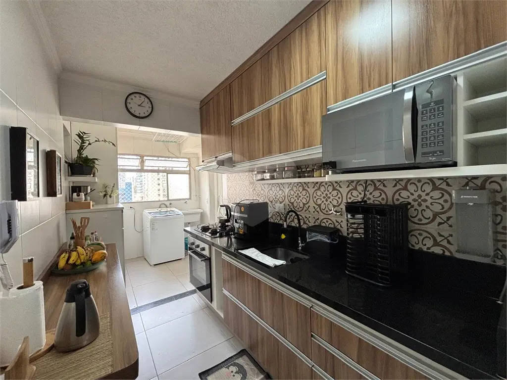 Cozinha planejada e área de serviço bem arejada