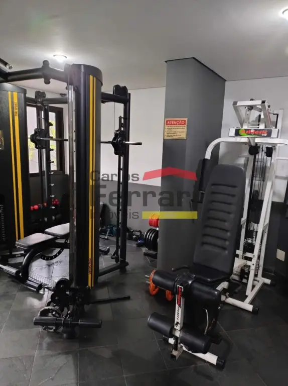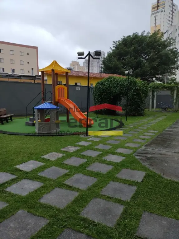 O condomínio oferece lazer completo com piscina, academia, salão de festas, sauna e playground.