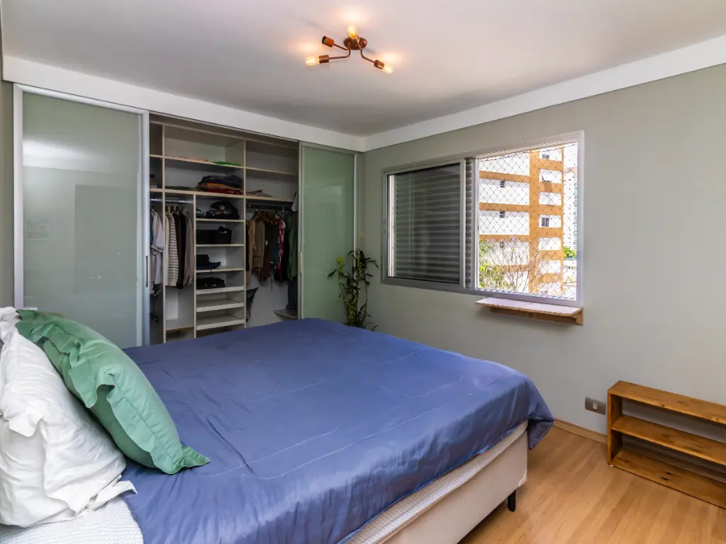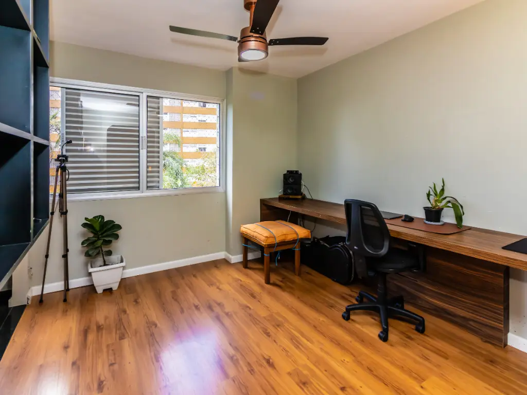 Na área íntima, o apartamento dispõe de três dormitórios, sendo uma suíte espaçosa com closet, projetada para oferecer máxima privacidade e conforto. Os demais quartos são versáteis e bem iluminados, podendo ser utilizados como dormitórios, escritório ou ambiente de estudos. Ao todo, o imóvel conta com três banheiros, todos muito bem conservados, oferecendo praticidade para toda a família.