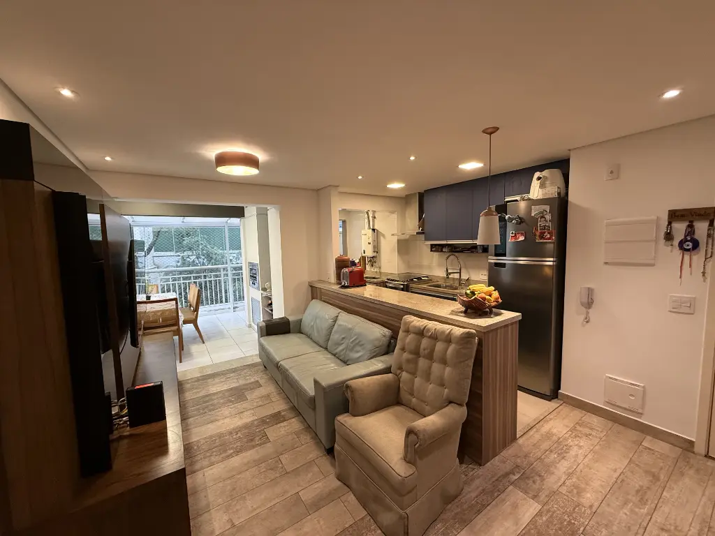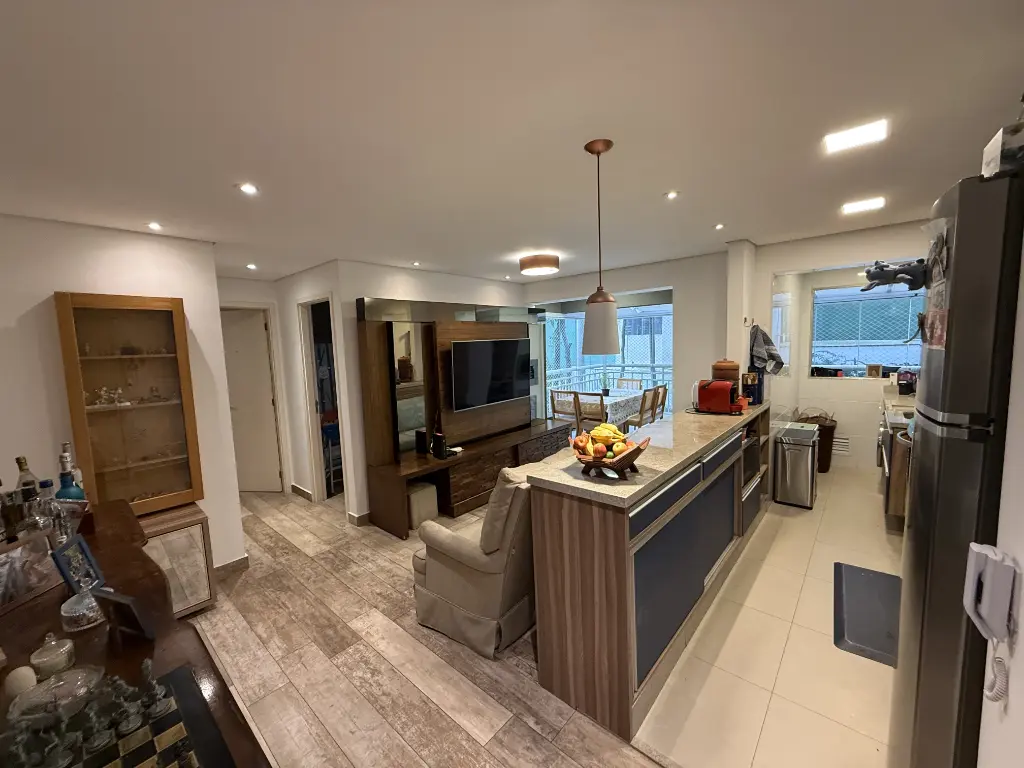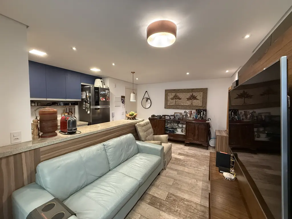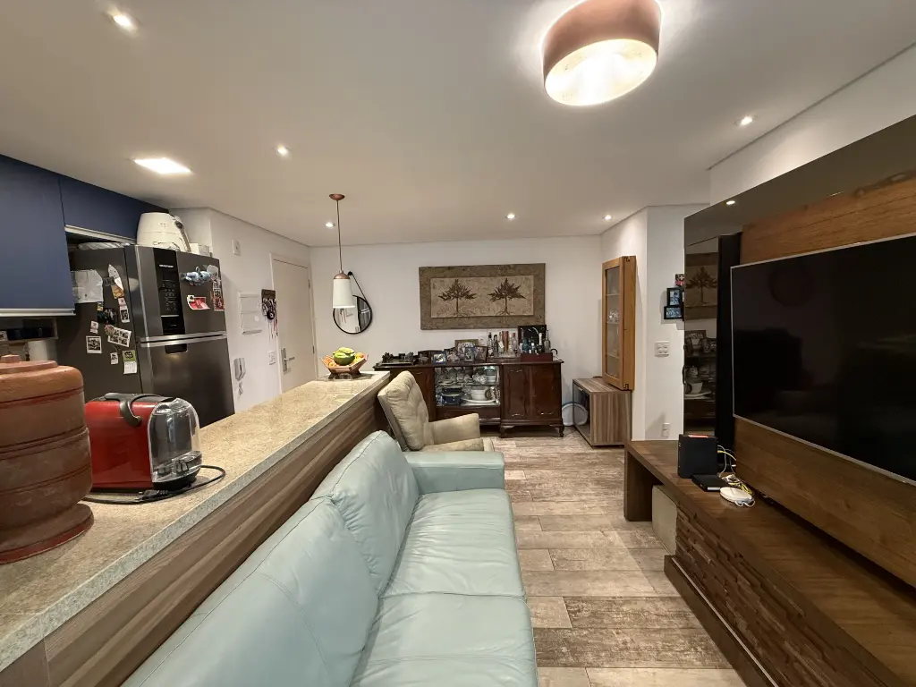 Sala integrada com cozinha americana