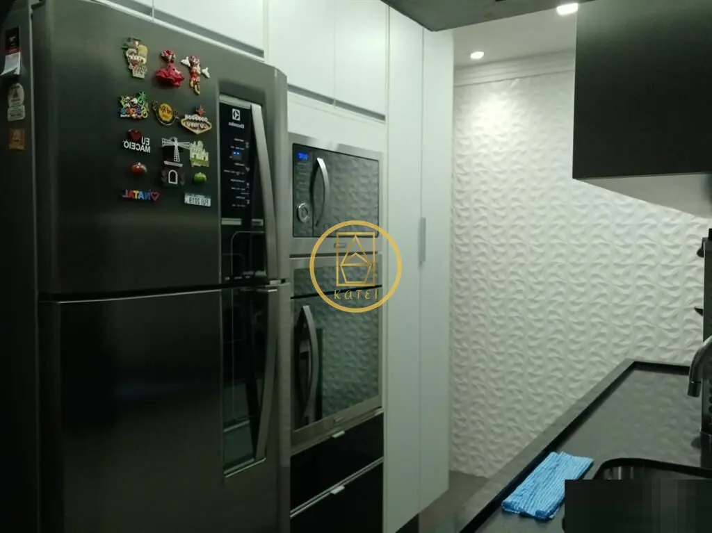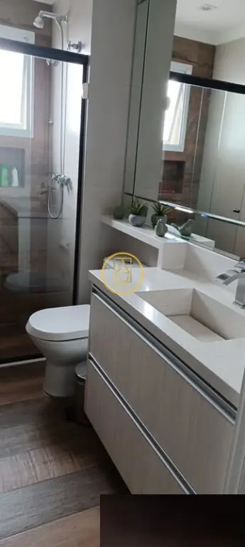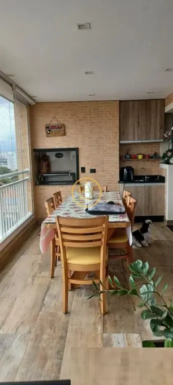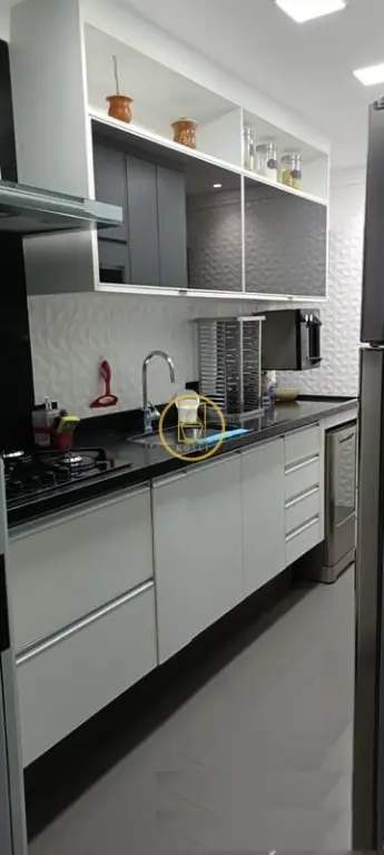 São 94m² com 3 dormitórios, sendo 1 suíte. Varanda gourmet com churrasqueira e fechamento em vidros, copa/bar, piso vinílico nos dormitórios e porcelanato dos demais ambientes.