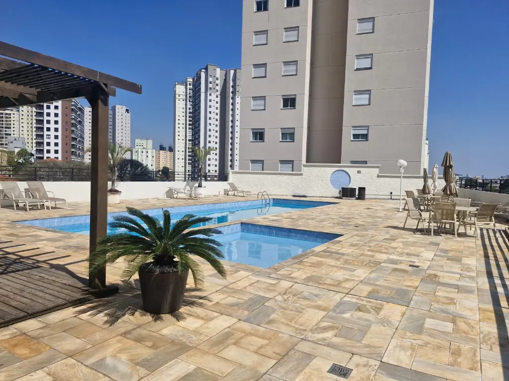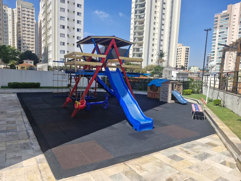 Condomínio com infraestrutura completa como piscina, academia, salão de festas, playground e brinquedoteca.