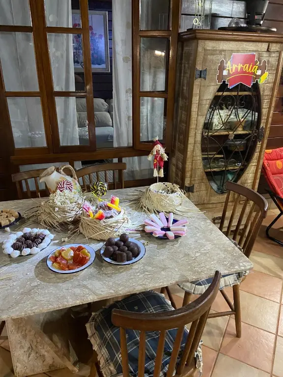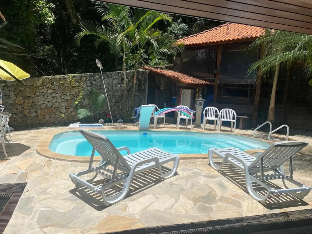 Imóvel localizado serra cantareira, cozinha, sala integrada com área de lazer, 3 dormitórios sendo 1 suíte, espaço com piscina, forno a lenha, sala jogos,