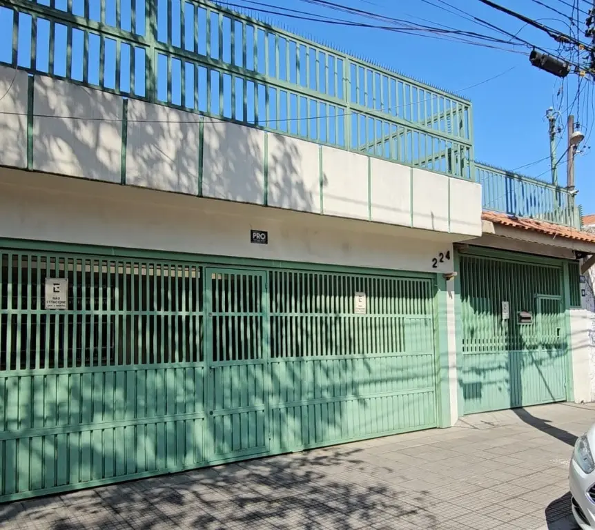 Frente: 4 vagas de garagem (cobertas), com portões automáticos