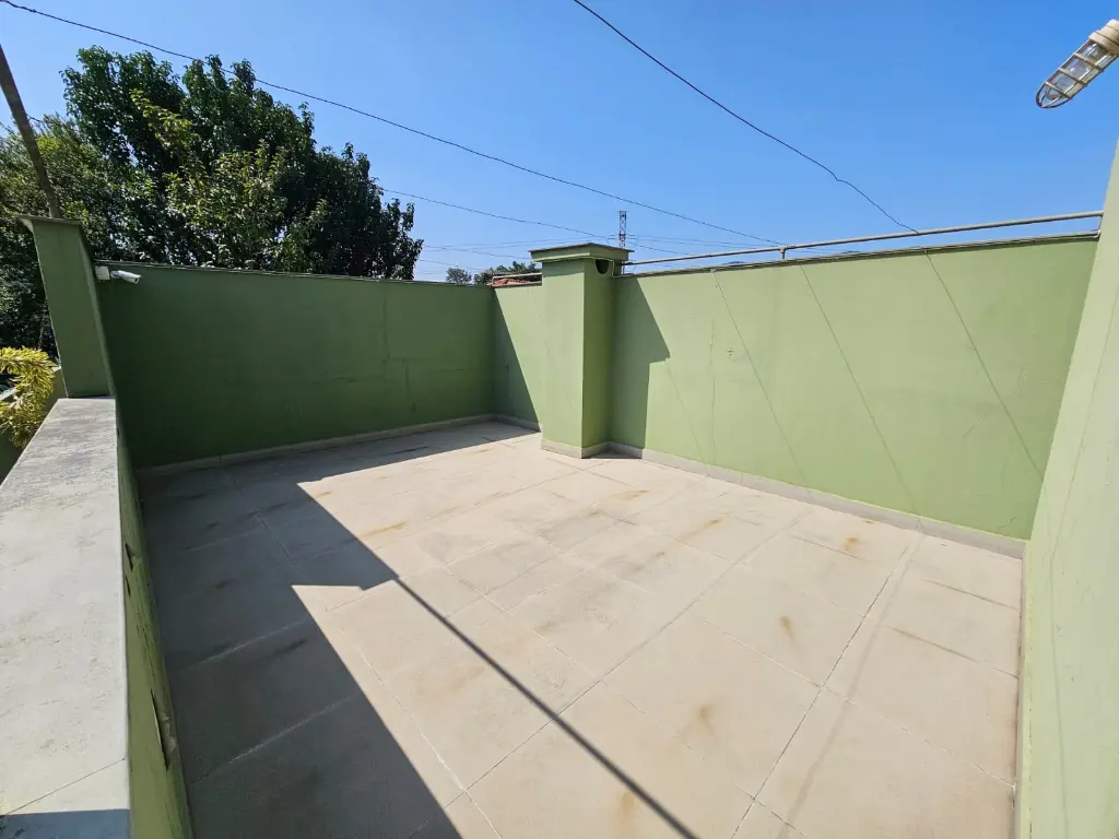 Área ao ar livre, de sacada sobre as garagens