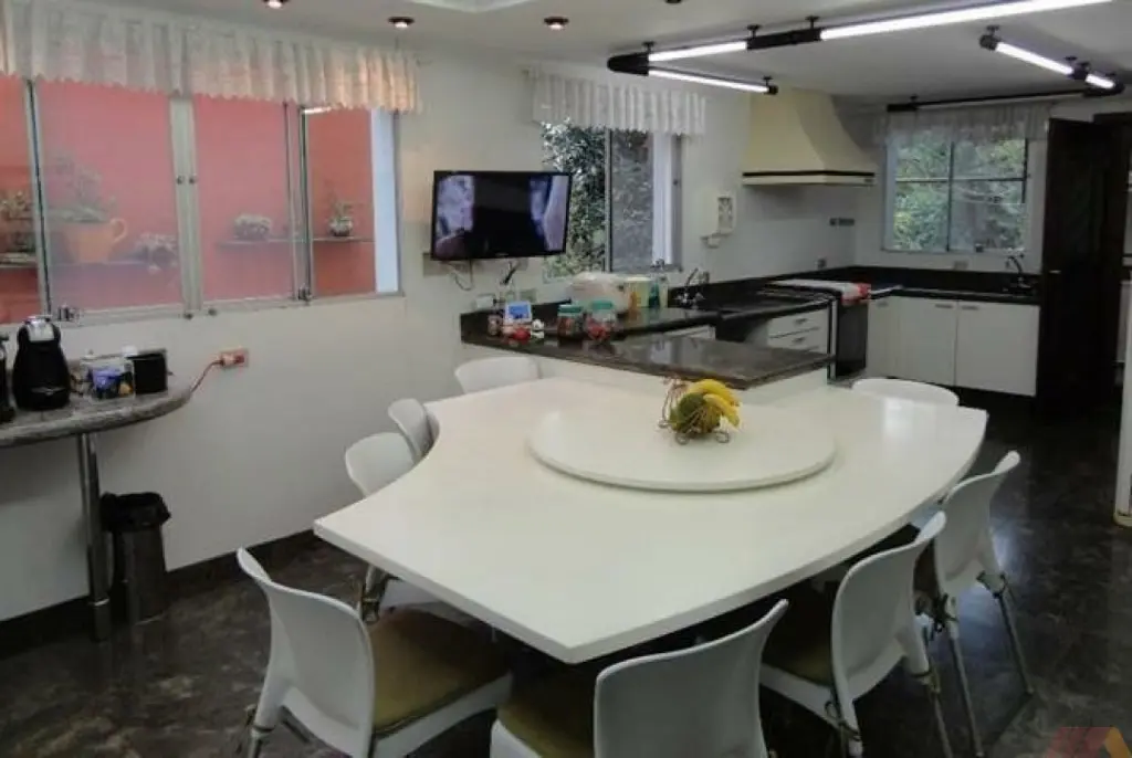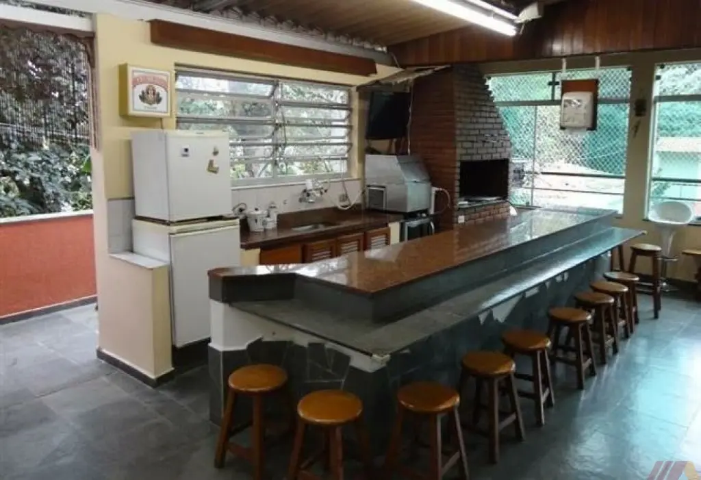 NO NIVEL INTERMEDIÁRIO: ampla sala de TV, bar, banheiro, cozinha ampla com armarios embutidos, lavabo, despensa + área de serviço com 30,24 m2, 2 depósitos, ampla área gourmet com balcão e churrasqueira.