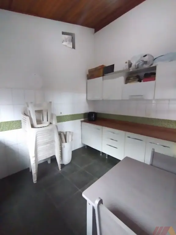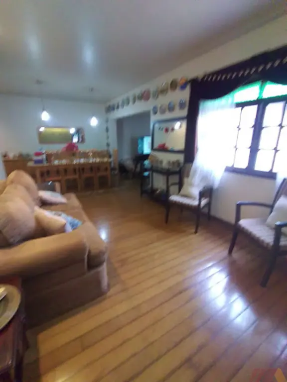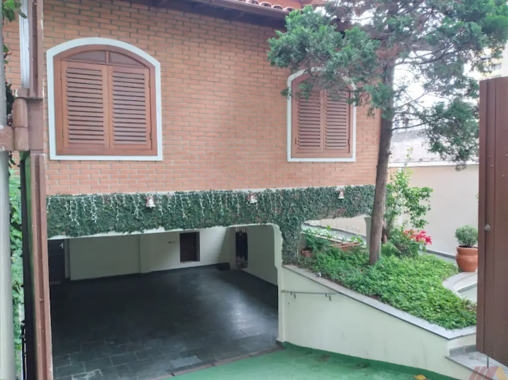 A casa tem 6 níveis diferentes, mas não equivalem a sete andares. Entrando pelo portão social, temos a cozinha, com armários e coifa. A sala ampla em L com 3 ambientes, lavabo e 1 suíte. Subindo 6 degraus, temos 1 suite, um banheiro e 2 dormitórios. Subindo 1 andar a partir desse nível temos um espaço, bem amplo, adaptado hoje como dormitório, mas que tem janelas de sala. Voltando ao nível inicial e descendo 1/2 andar, temos a saída para a garagem para 4 carros, sendo 3 vagas cobertas e no caso de serem usadas apenas as 3 e, dependendo do tamanho doa veículos, é possível cada um sair sem precisar mover os outros dois Há também um depósito nessa garagem com porta. Descendo mais 1/2 andar temos 1 dormitório amplo. 1 despensa, um quarto (de serviço ou de despejo) Área de serviço com armários e banheiro de serviço. Na parte externa desse nivel temos amplo quintal com piso Área de servico externa com depósito e a ala de hóspedes com sala, quarto e banheiro, integrada a sala superior e com saída independente. Descendo para o último nível, temos quintal ajardinado de terra com pedrisco. Espaço gourmet com cozinha fechada completa com balcão de integração com espaço coberto com churrasqueira (3 em 1) completa: pia auxiliar, churrasqueira, forno e figal a lenha. Casinha de cachorro de alvenaria Um ambiente que hoje funciona como oficina mas que pode ser usado como salão de festas ou salão de jogos etc.