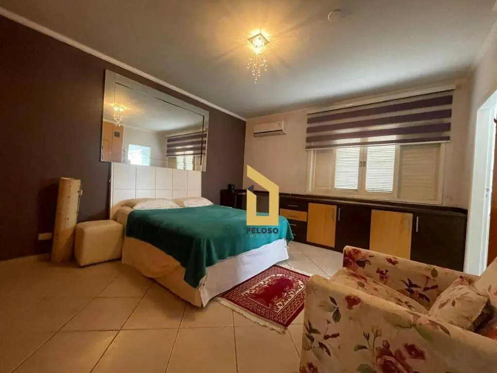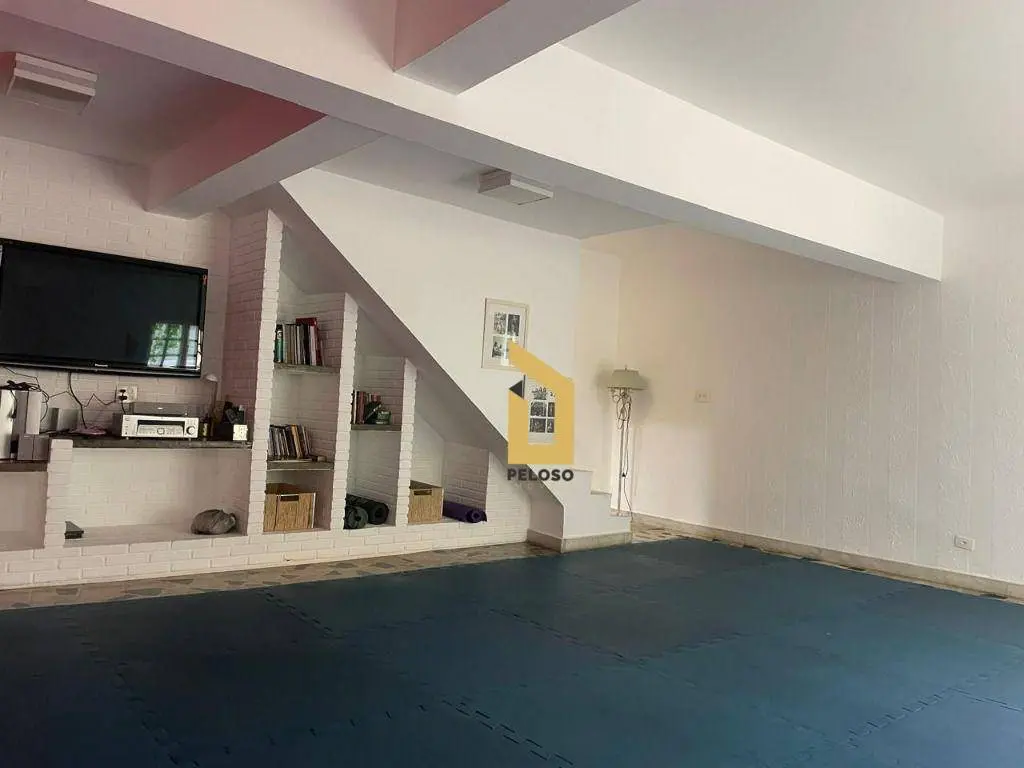 3 dormitórios sendo 1 suíte com armários planejados, sala com lareira, cozinha americana moderna e funcional, jardim de inverno, espaço gourmet, quintal espaçoso, jardim externo agradável e bem distribuído, salão amplo na parte inferior, com diversas possibilidades de uso para espaço de festas, home office, academia, estúdio entre outros, 5 banheiros, despensa e quarto e banheiro para colaboradores.