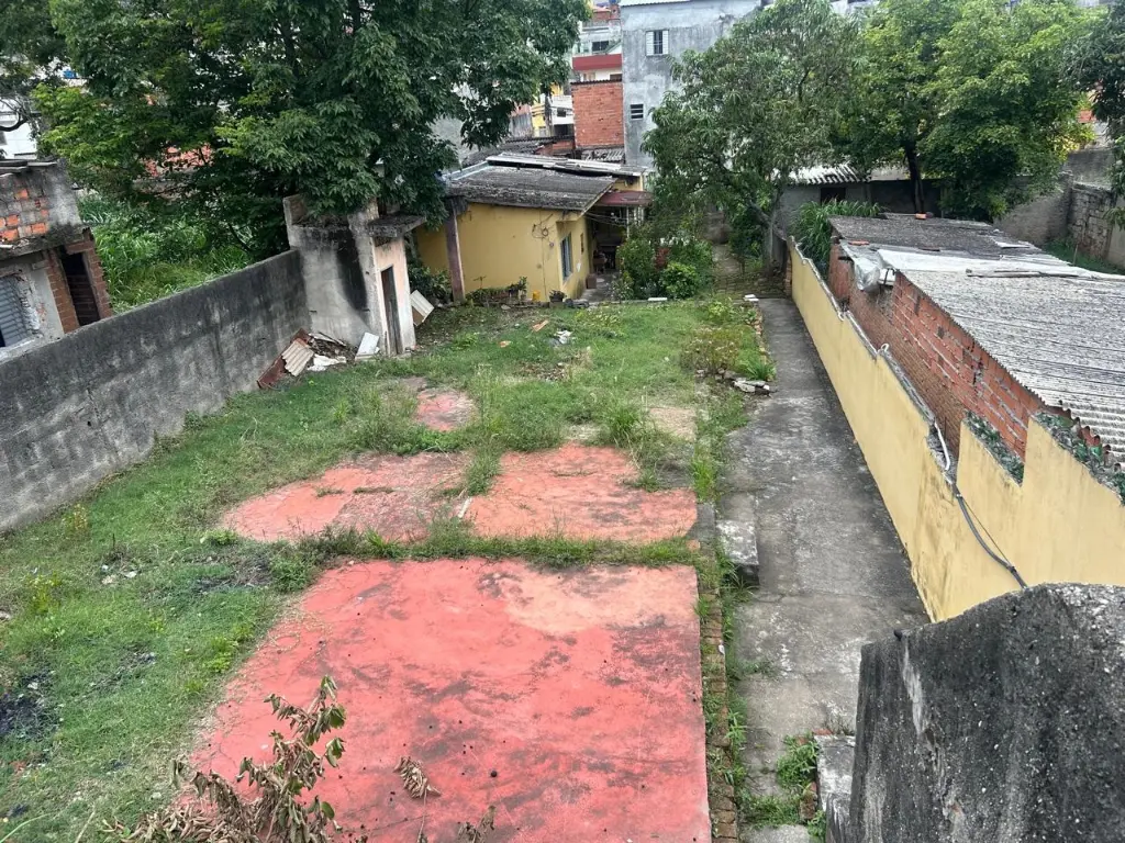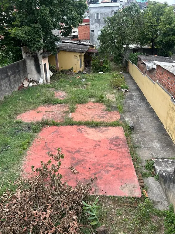 Terreno 280m² na Brasilândia com pequena casa térrea, 1 dormitório, sala, cozinha, banheiro e lavanderia. Terreno abaixo do nível da rua, mas plano em toda a sua extensão.