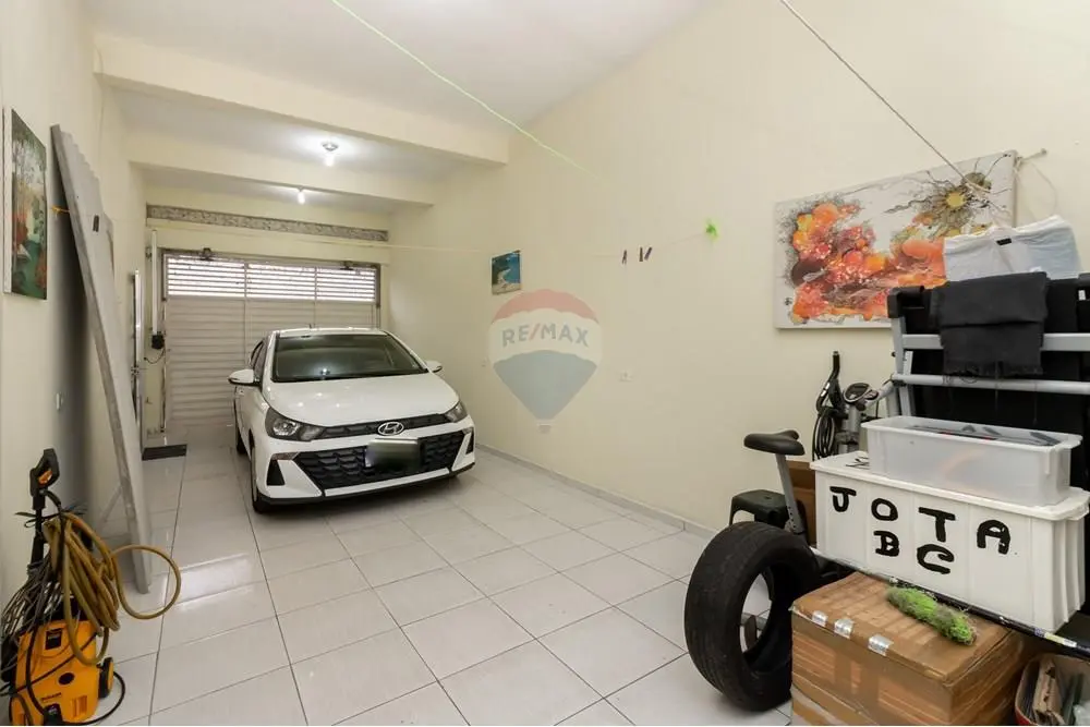 Garagem para duas vagas, cobertas.